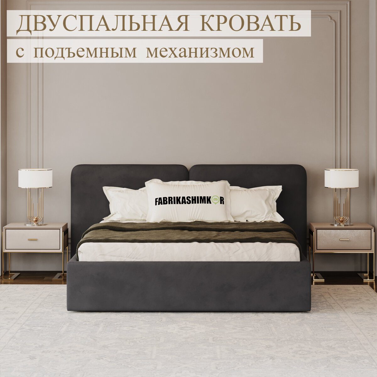 Кровать 160х200 двуспальная дизайнерская AQUA с подъемным механизмом цвет темно-серый 42 900 ₽