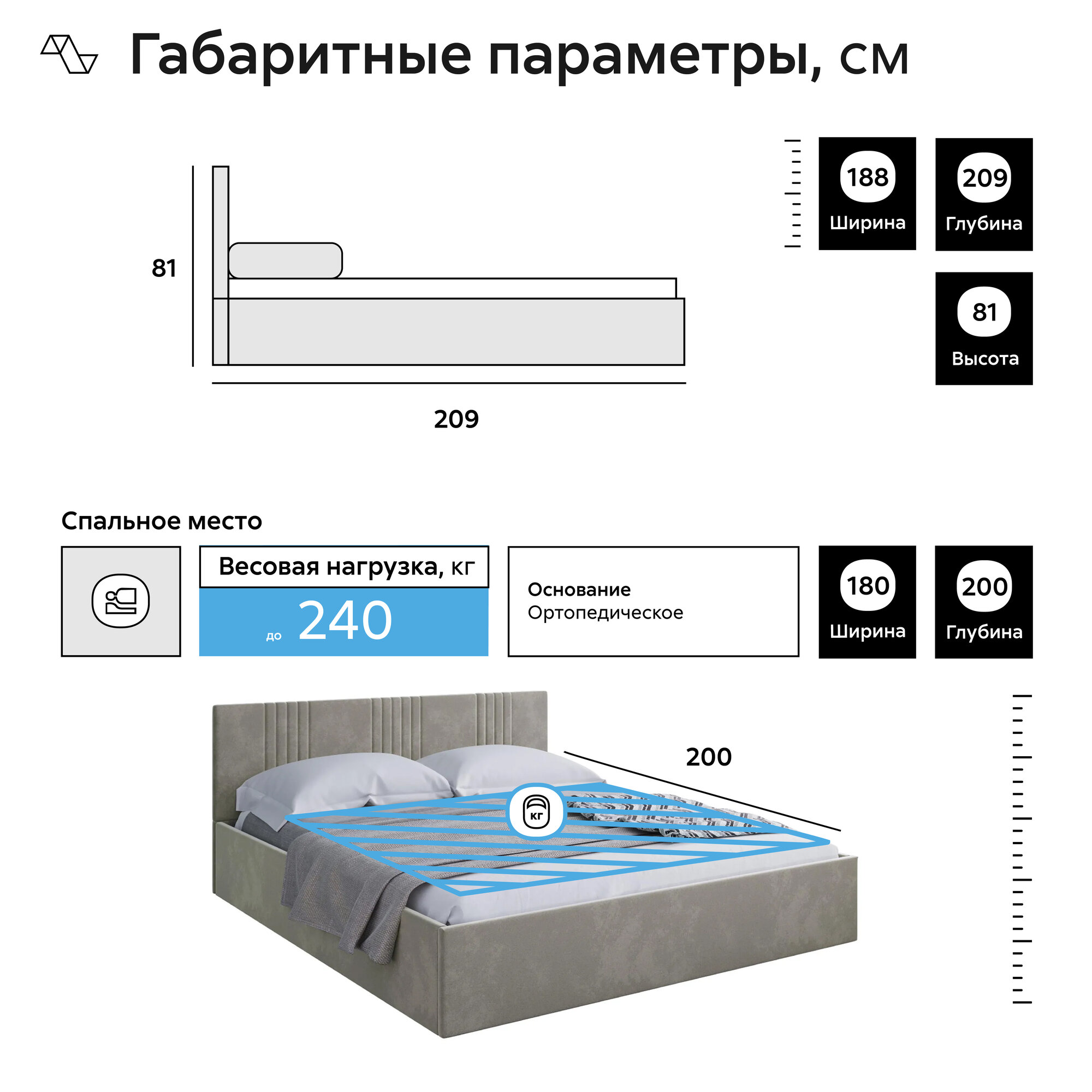 | Дополнительная информация | Указана нагрузка на одно спальное место. |