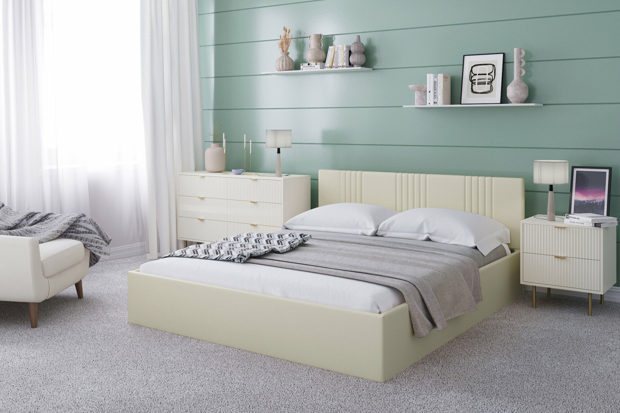 Кровать Нонтон Амелия; ортопедические ламели + ПМ; экокожа светло-бежевая 148x209x81 см 22 890 ₽