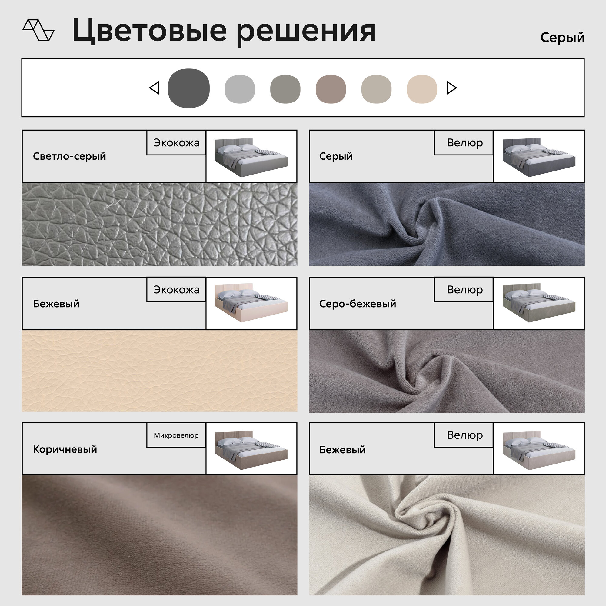 Кровать Нонтон Амелия экокожа Nitro grey 168x209x81 см 24 290 ₽
