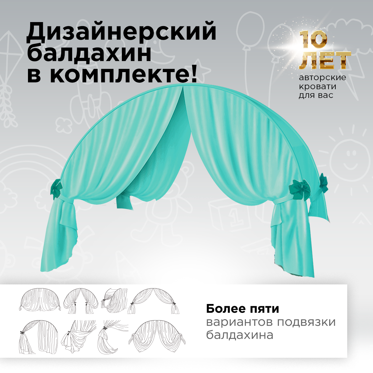 | Дополнительная информация | Дизайнерский балдахин в комплекте; крепления латофлексы; 3Д-изображение; края деталей покрыты мягким профилем |