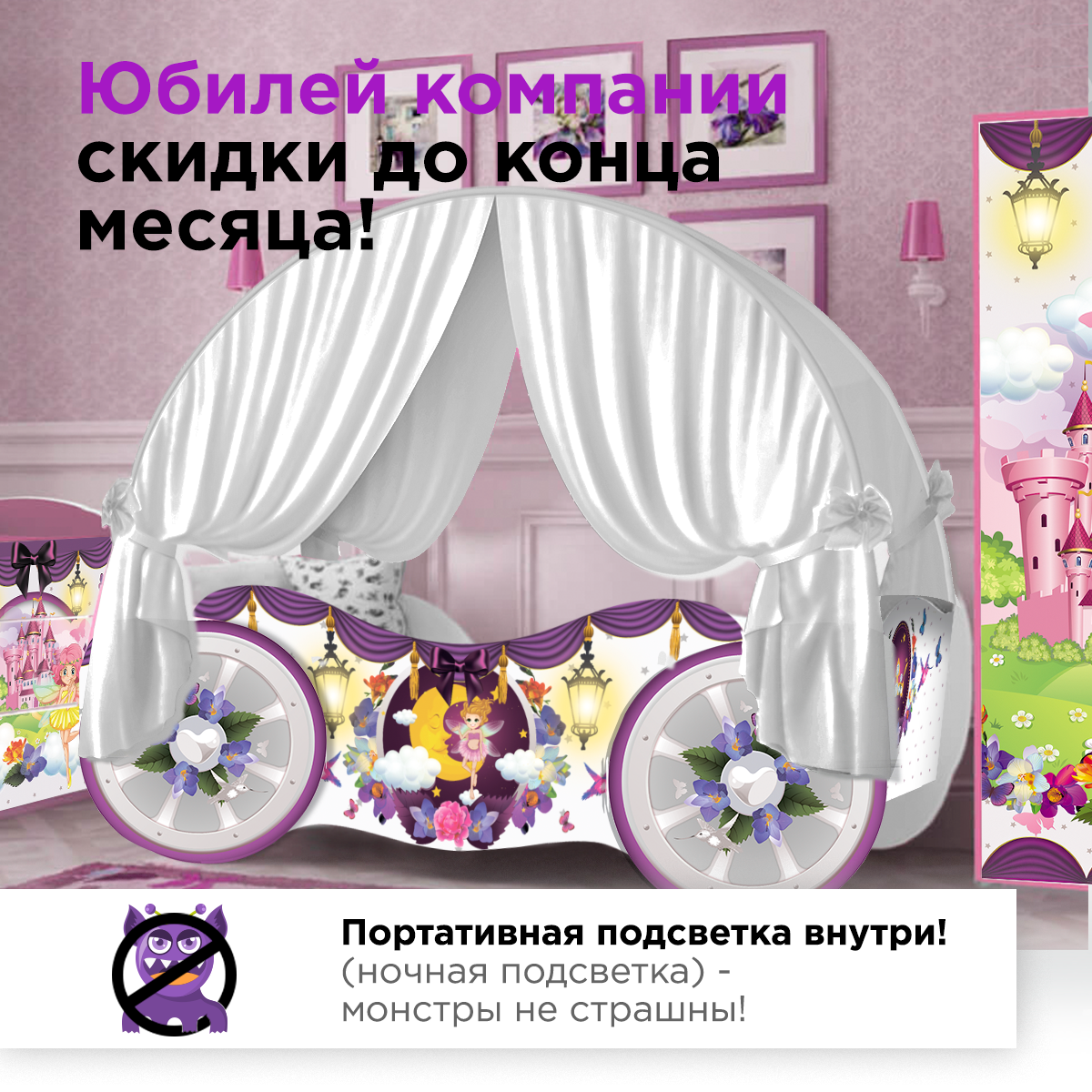 | Особенности | в форме домика, в форме машины, для детей, основание под матрас, с подсветкой, со столом |