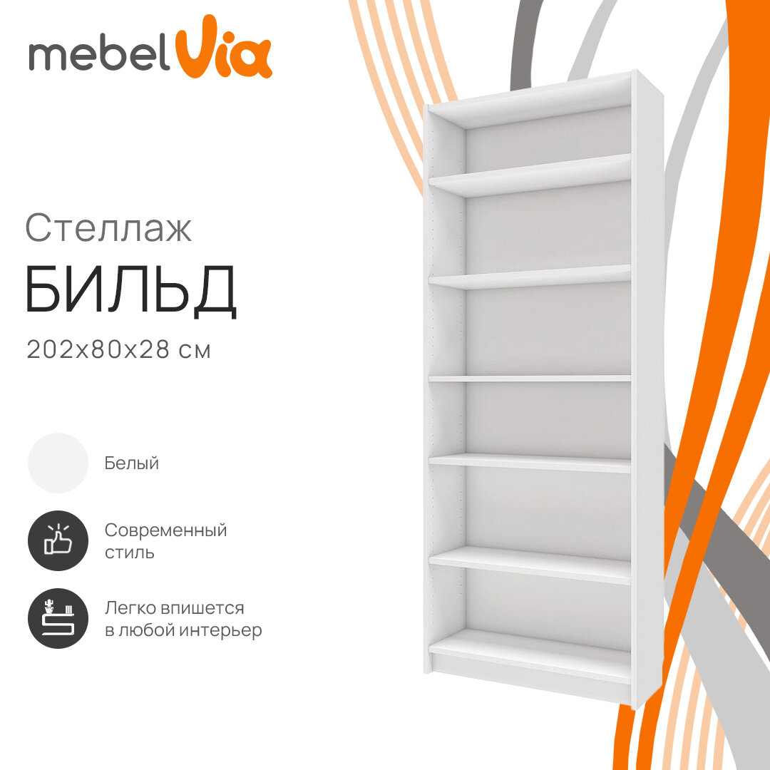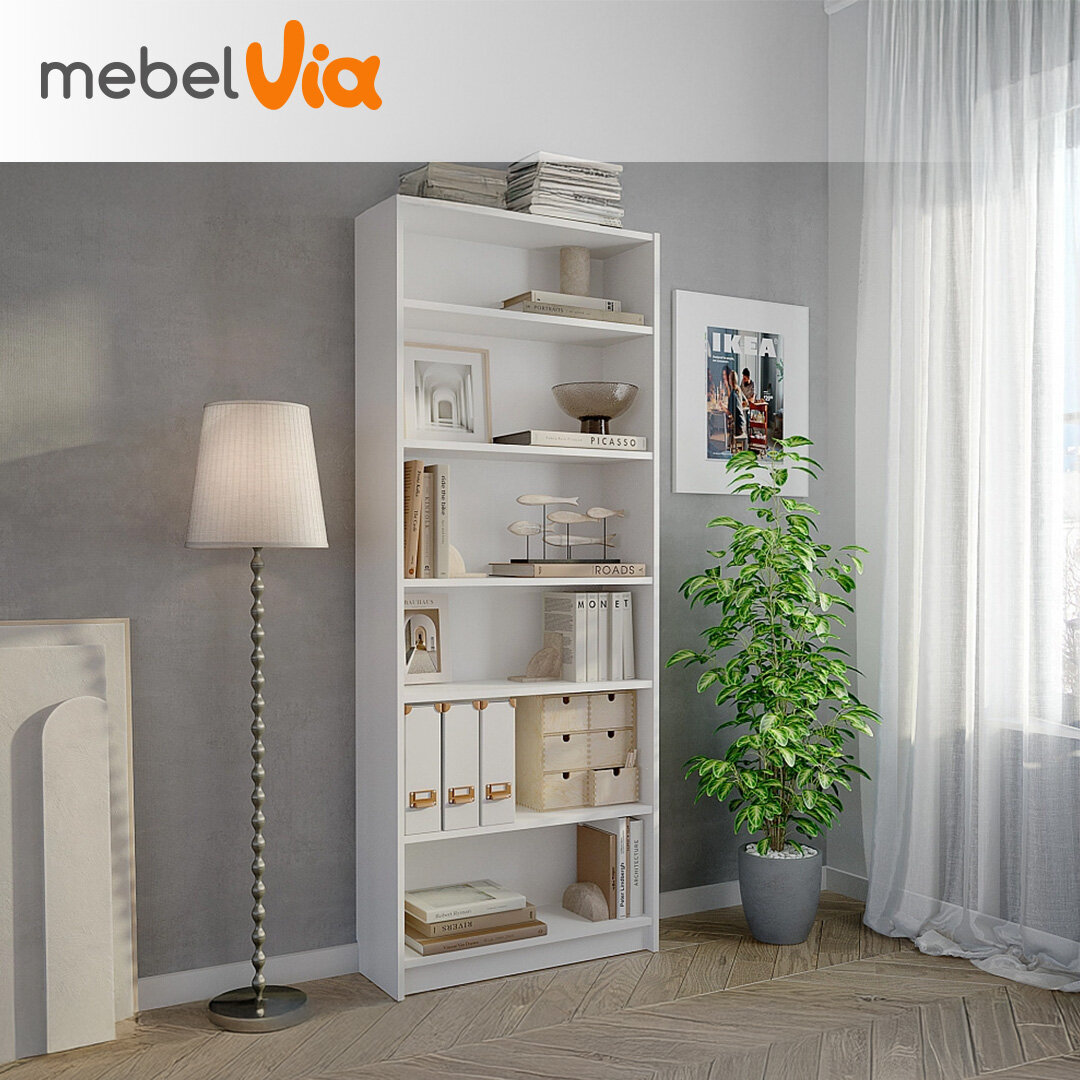 Отзывы на Белый стеллаж для хранения документов, книг и игрушек Бильд, 6 полок, ЛДСП, 80х202х28 см