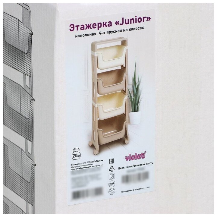 Violet Этажерка "Junior" напольная 4-х ярусная на колесах (латте/слон.кость) 771420 информация:
