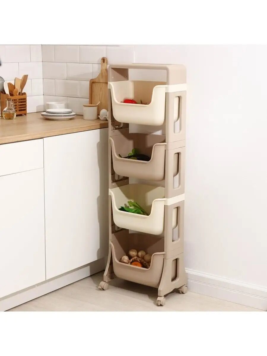 Этажерка на колесиках Джуниор 4 яруса, цвет Микс / детский пластиковый органайзер для хранения для ванной / подставка напольная на колесах для кухни
