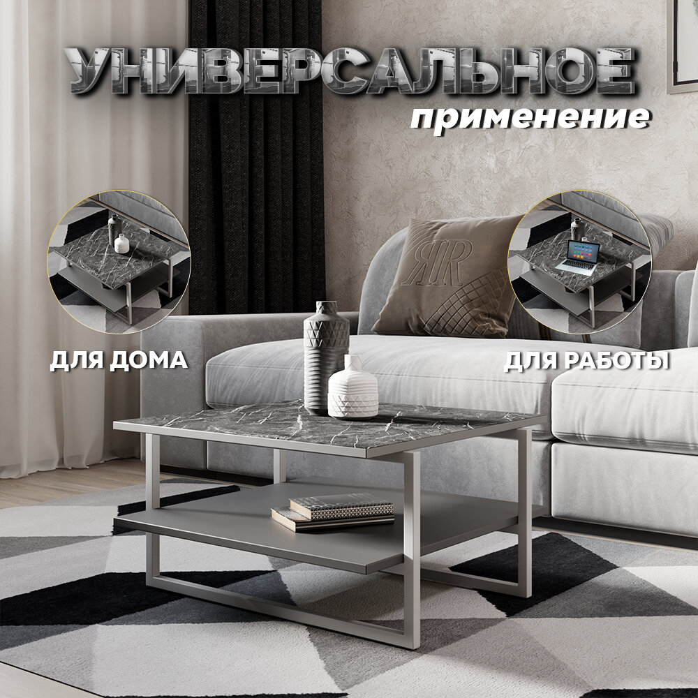 Журнальный столик для гостиной Moon, черный мрамор/серый, 60х60х36 информация: