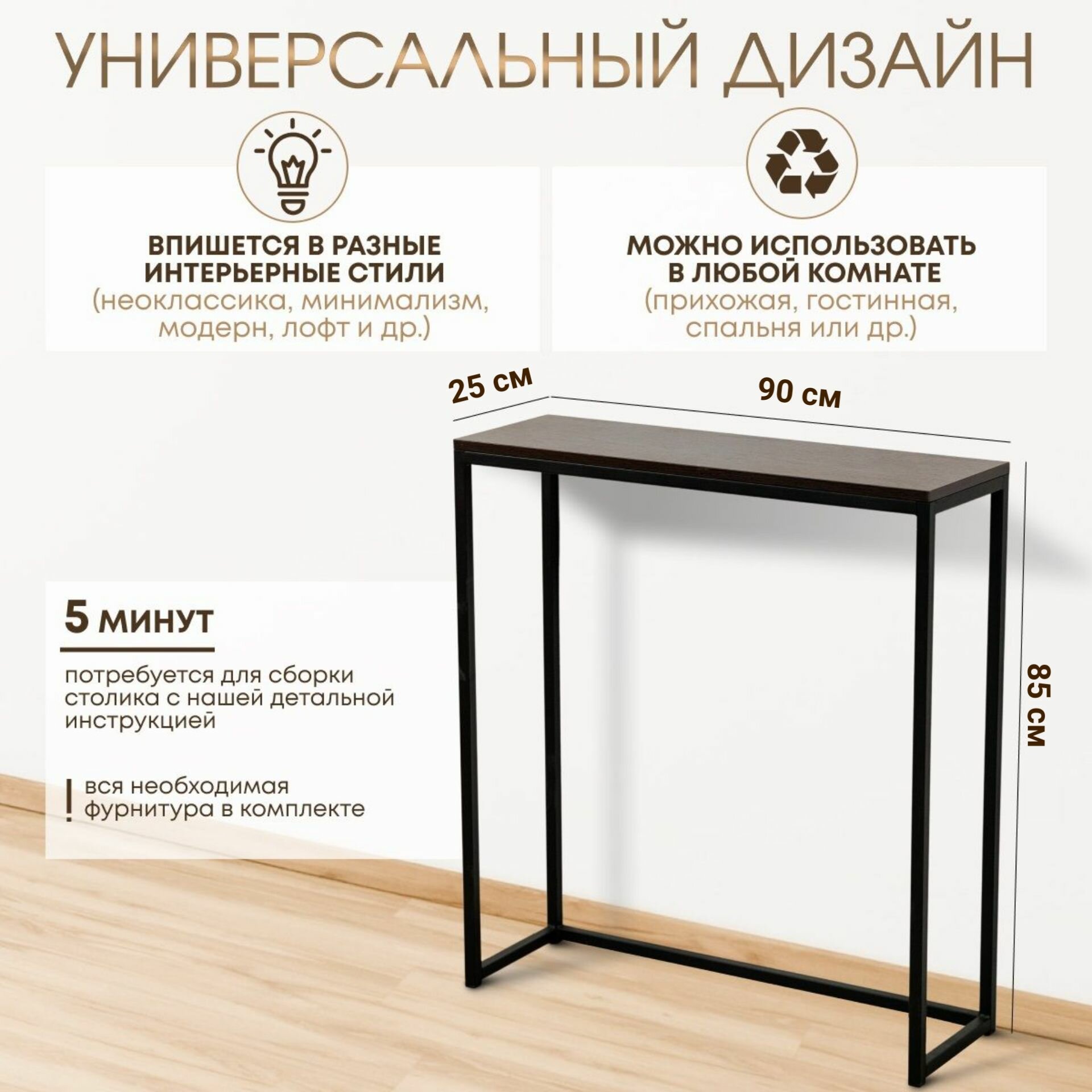 Консольный столик, Венге, 85х90х25 см информация: