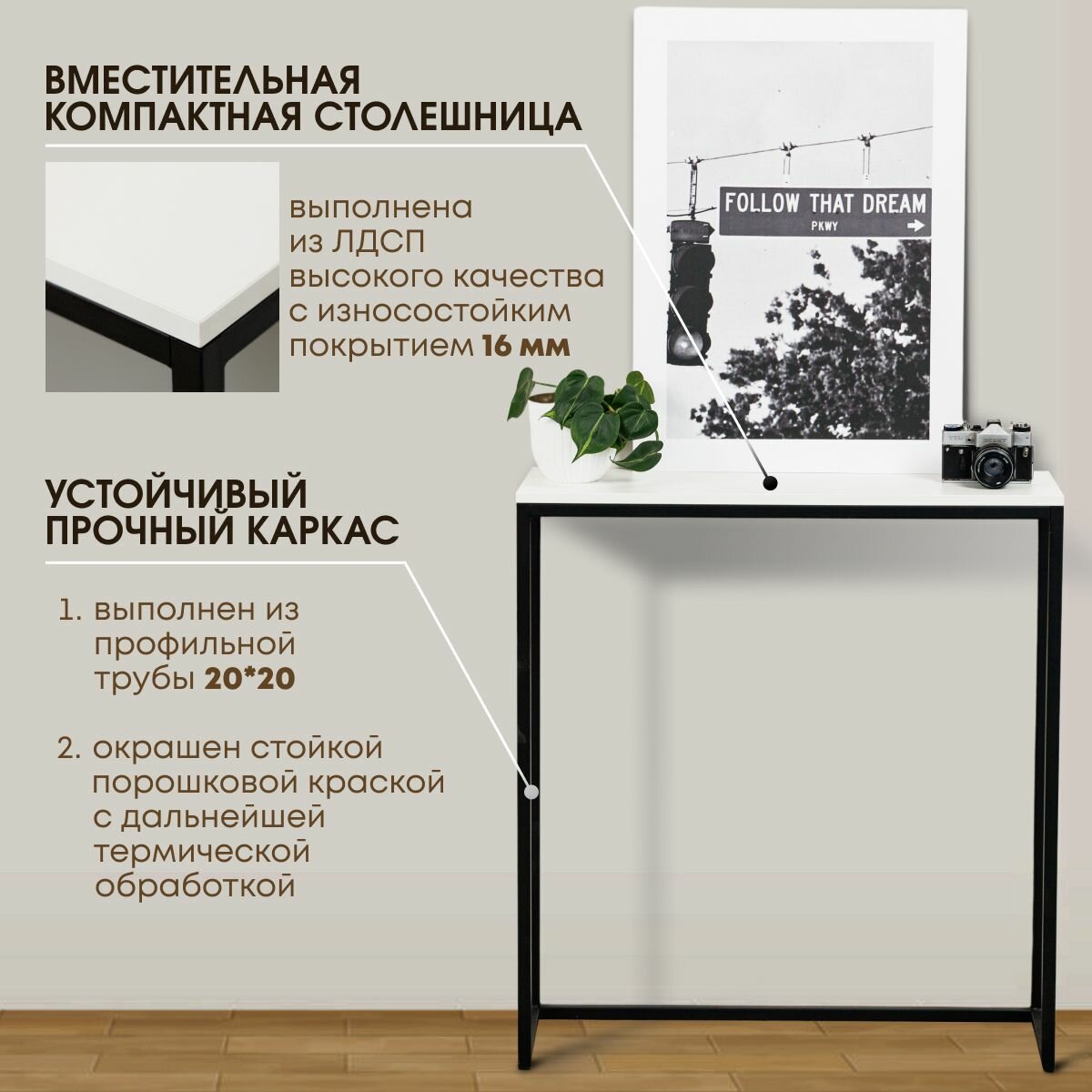 Консольный столик, Белый, 85х90х25 см информация: