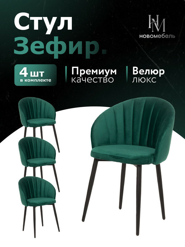 Отзывы на Стулья для кухни мягкие комплект 4 шт новомебель Зефир велюр изумрудный