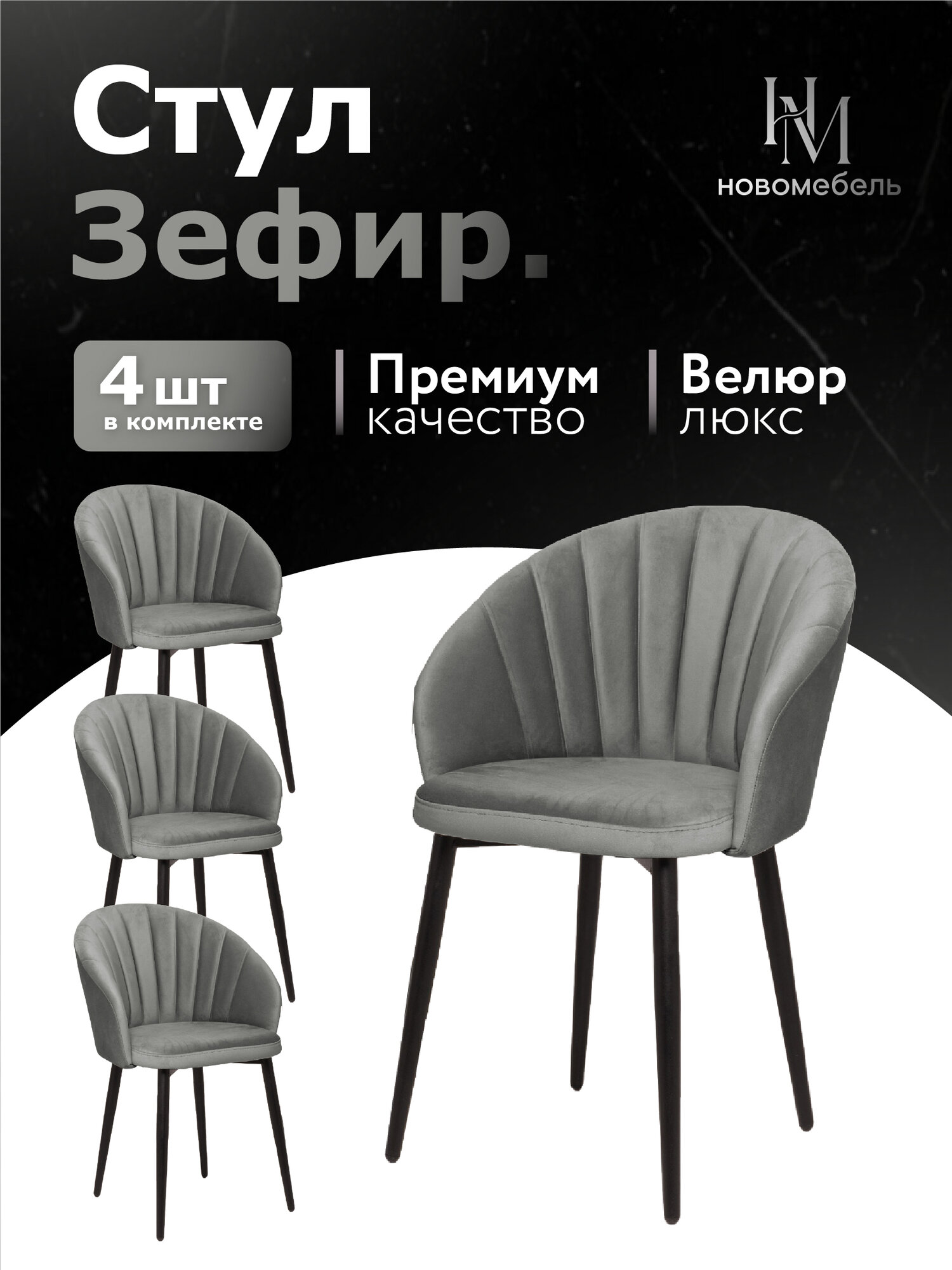 Отзывы на Стулья для кухни мягкие комплект 4 шт новомебель Зефир велюр серый