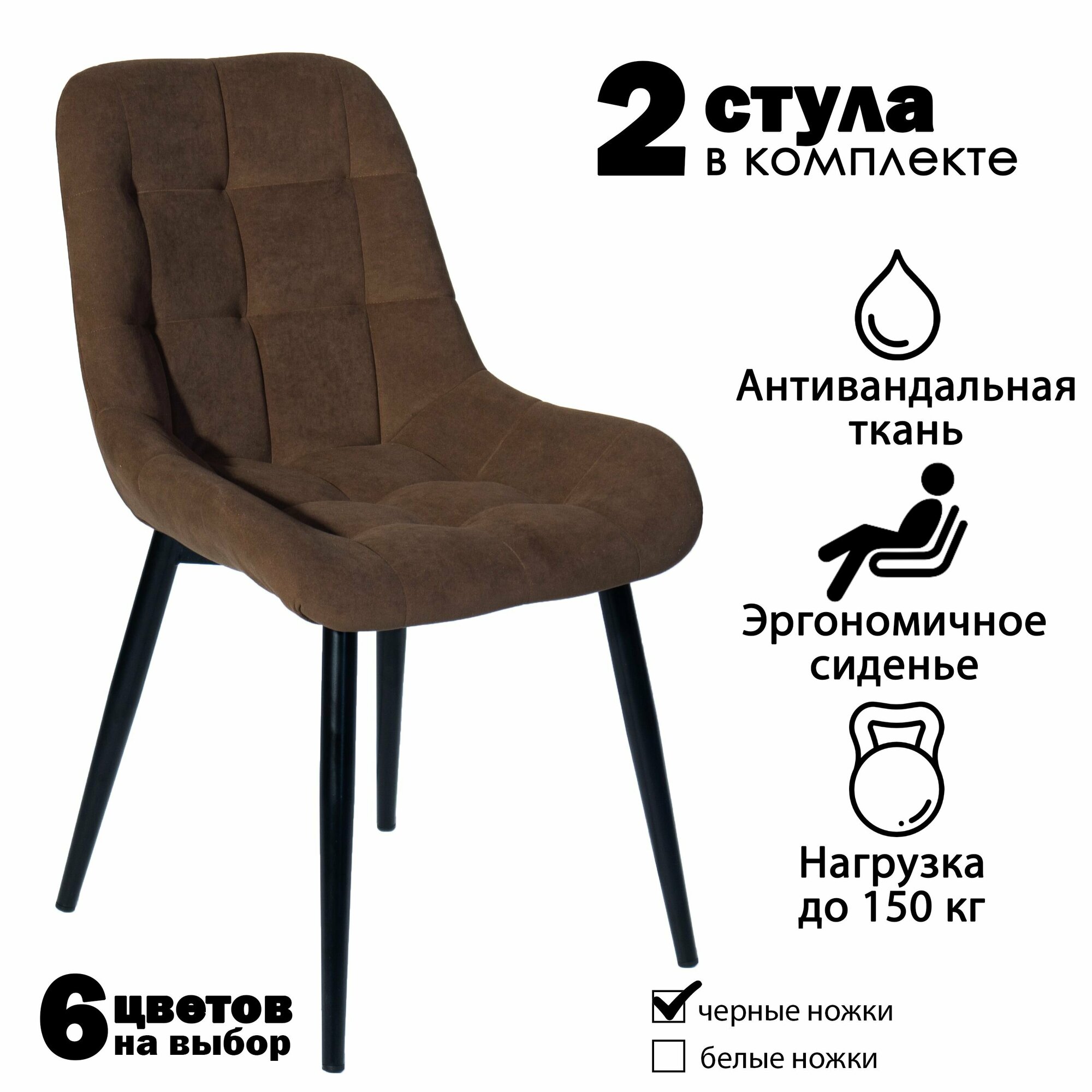 Стул мягкий кухонный, комплект из 2 стульев для кухни румба, коричневый велюр, черные ножки информация: