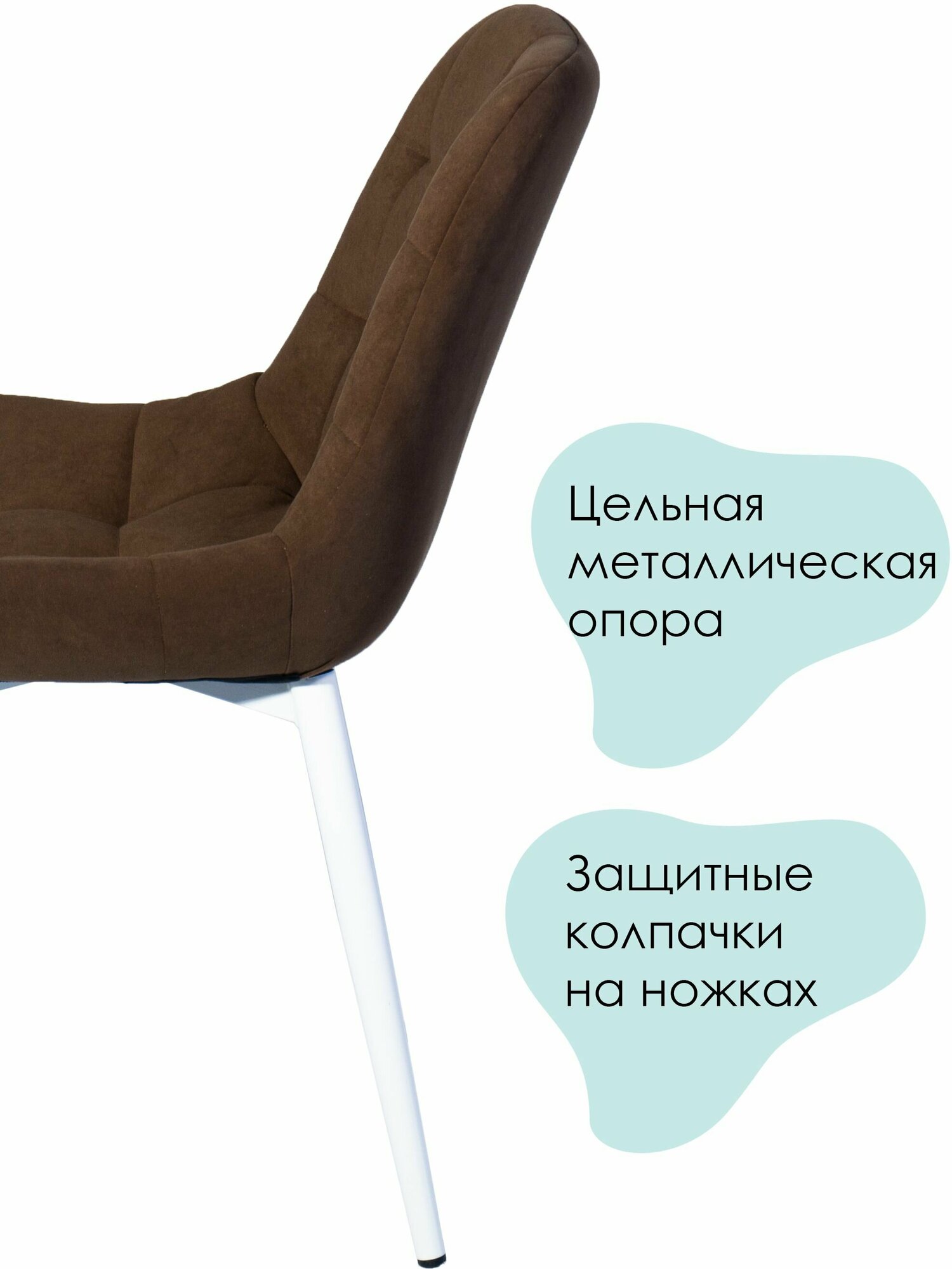 Стул мягкий кухонный, комплект из 2 стульев для кухни румба, коричневый велюр, белые ножки информация: