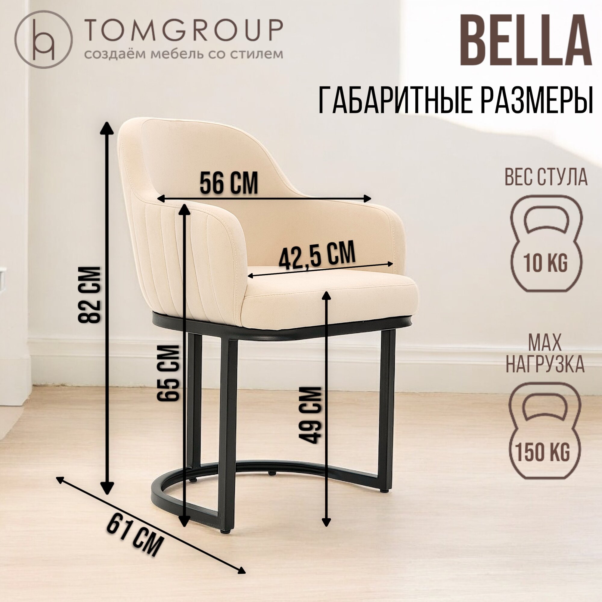 TOMGROUP Стул Bella ivory / Black, светло-бежевый велюр с черным каркасом для кухни информация: