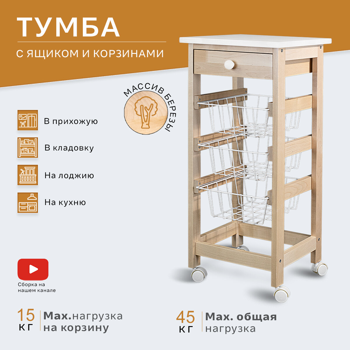 10 цен на Тумба с ящиком и корзинами белый/лак