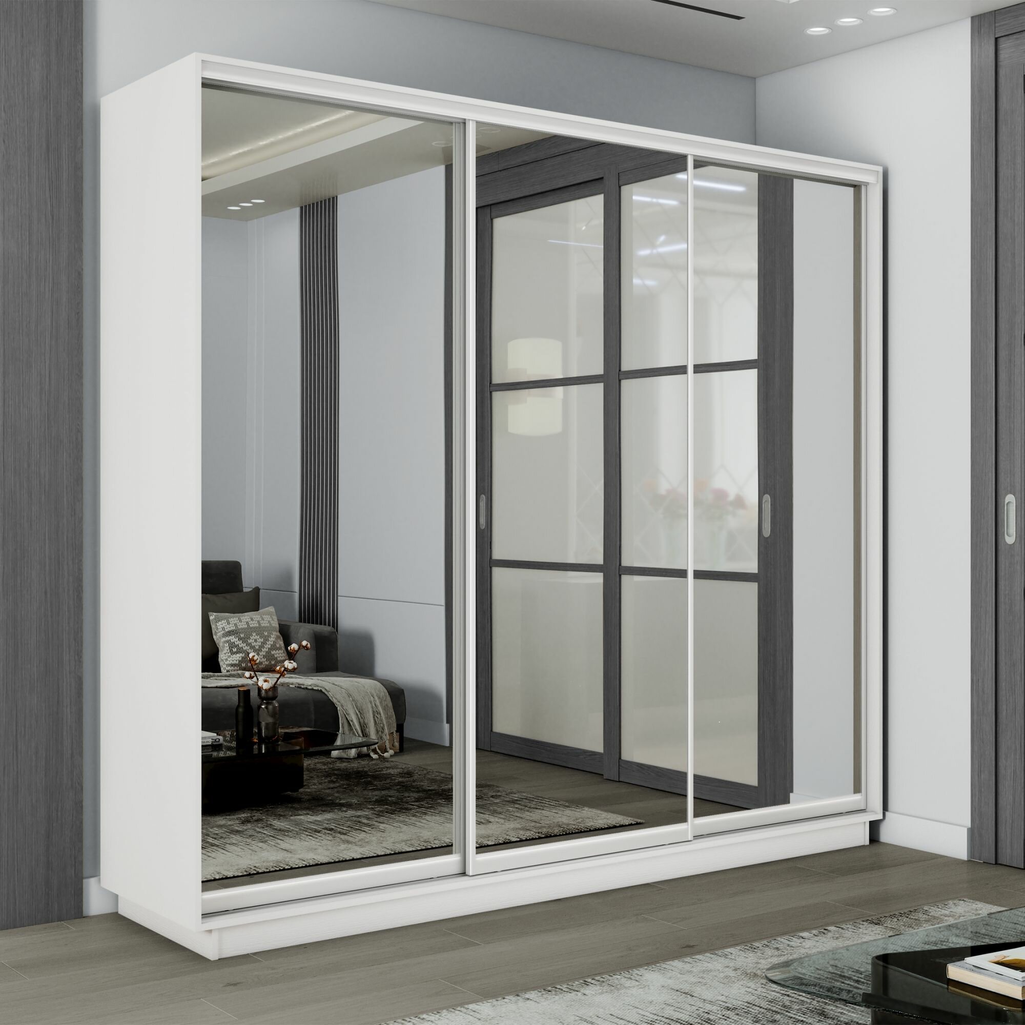10 цен на Шкаф-купе 2,4 Экспресс 3-х дверный 240х240х60 Зеркало/Зеркало/Зеркало Белый снег