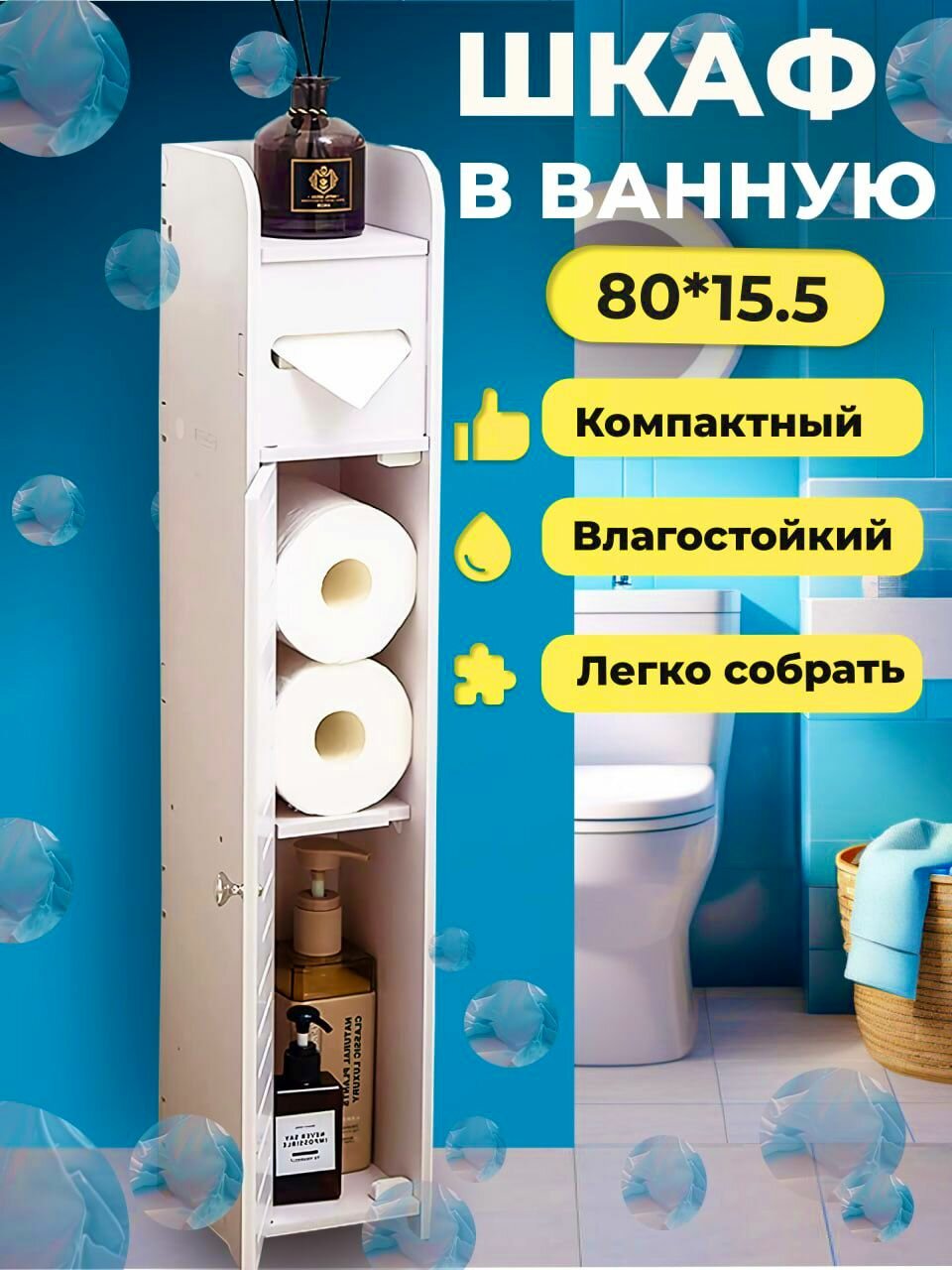 Шкаф пенал для ванной и туалета узкий напольный/ Органайзер для хранения хозяйственных средств в ванную туалет прихожую для хранения вещей косметики мелочей белья украшений, универсальный информация: