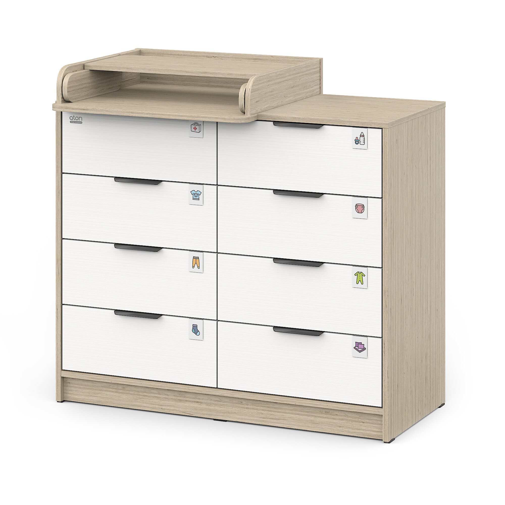 Атон комод "Zeus" шариковые направляющие 8 ящ.Дуб тонсберг/белый премиум информация: