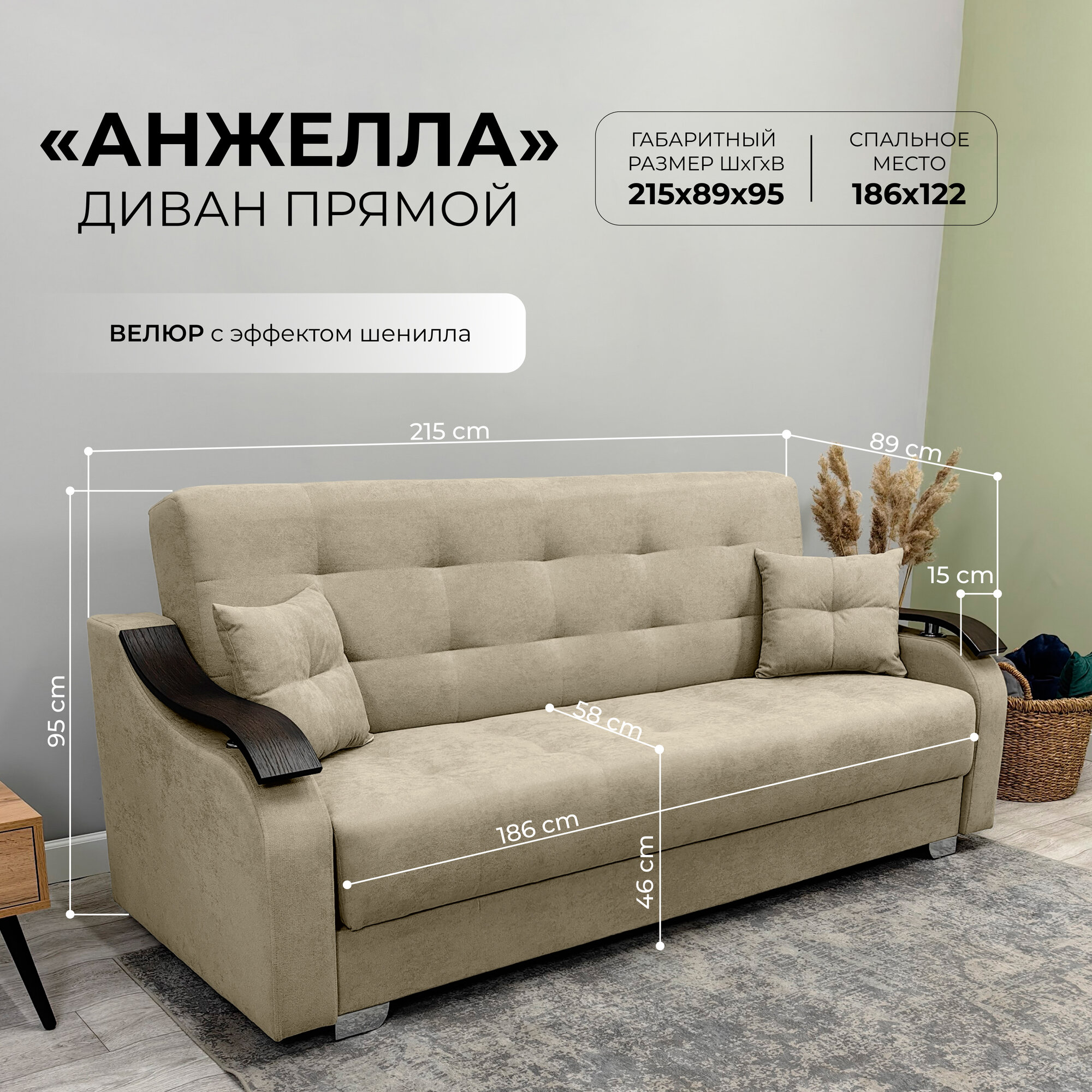 Отзывы на Прямой диван - Кровать Анжела. Материал велюр. Цвет Бежевый. Размер 215*89*95. Наполнение усиленный пружинный блок типа Боннель