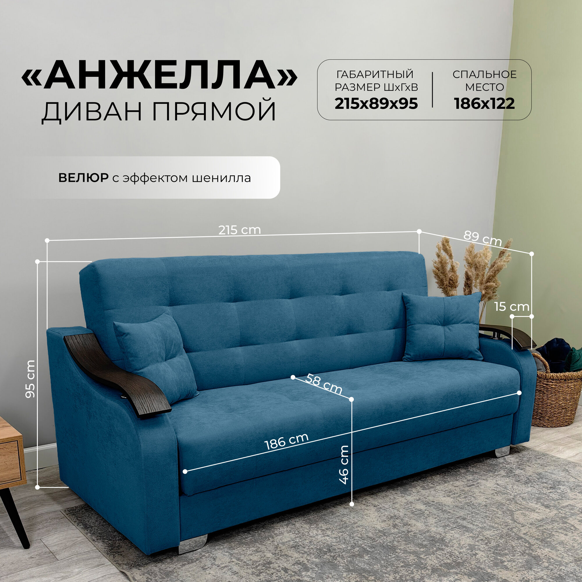 Отзывы на Прямой диван - Кровать Анжела. Материал велюр. Цвет Синий. Размер 215*89*95. Наполнение усиленный пружинный блок типа Боннель