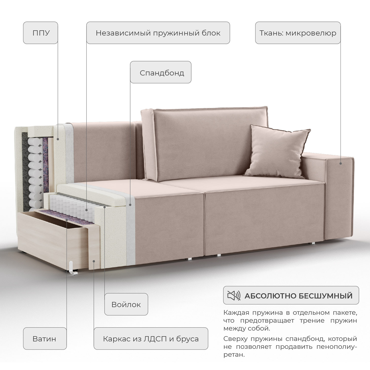 Диван-кровать, диван раскладной, прямой NRAVA Loft M Lite 2470х1000х890 бежевый 43 290 ₽