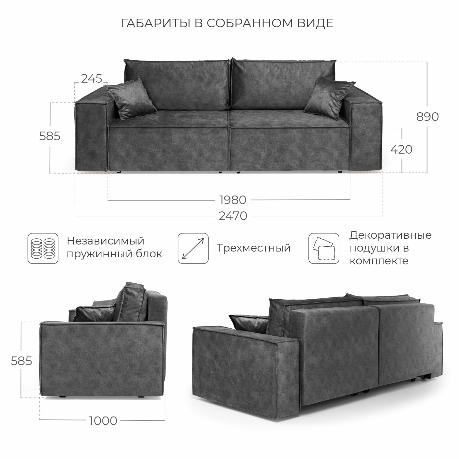 Диван-кровать NRAVA Loft M 2470х1000х890 ROCK 08 темно-серый информация: