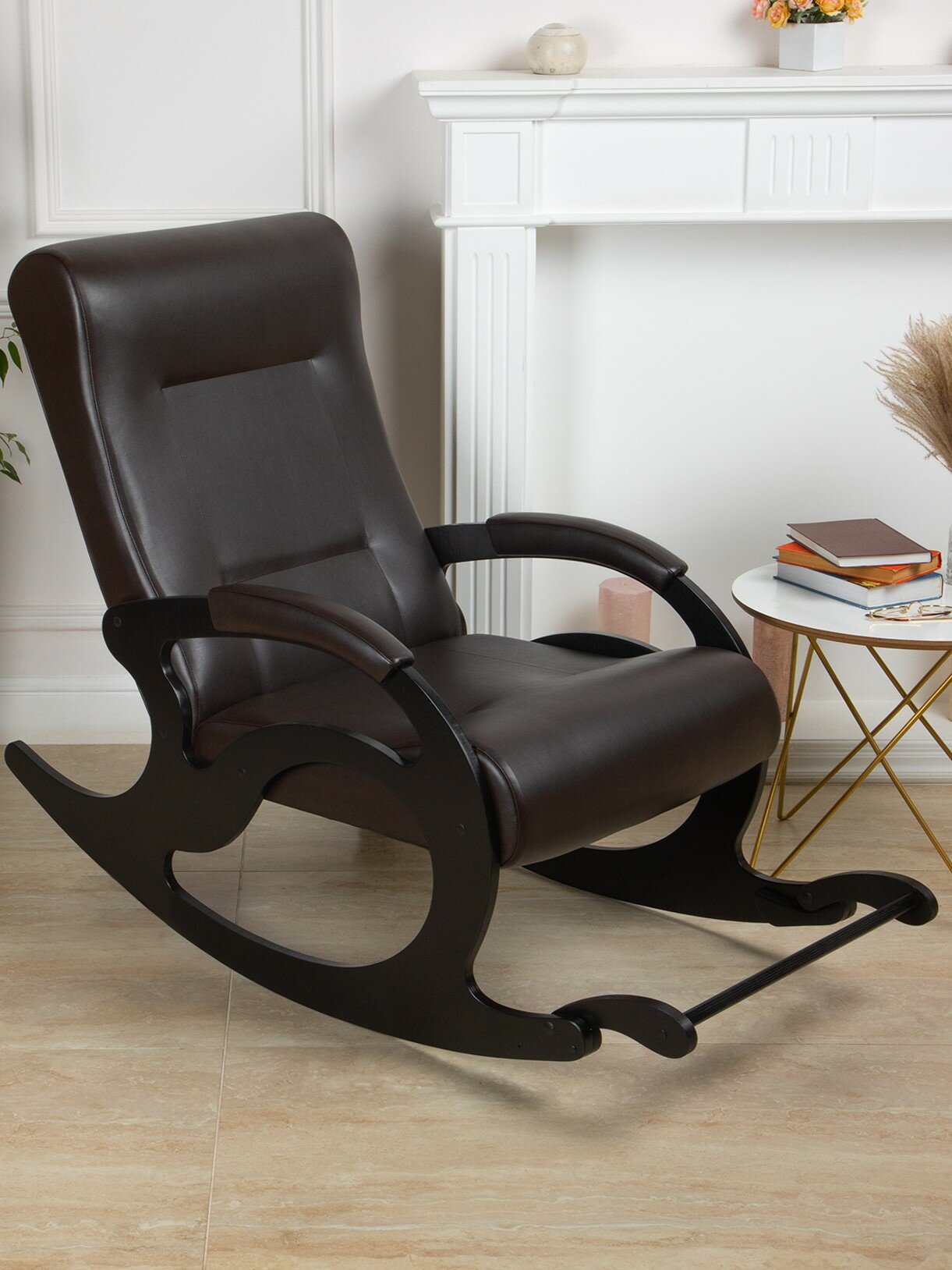 Кресло-качалка для взрослых с подножкой для дома Ларгус 4 экокожа темно-коричневый информация: