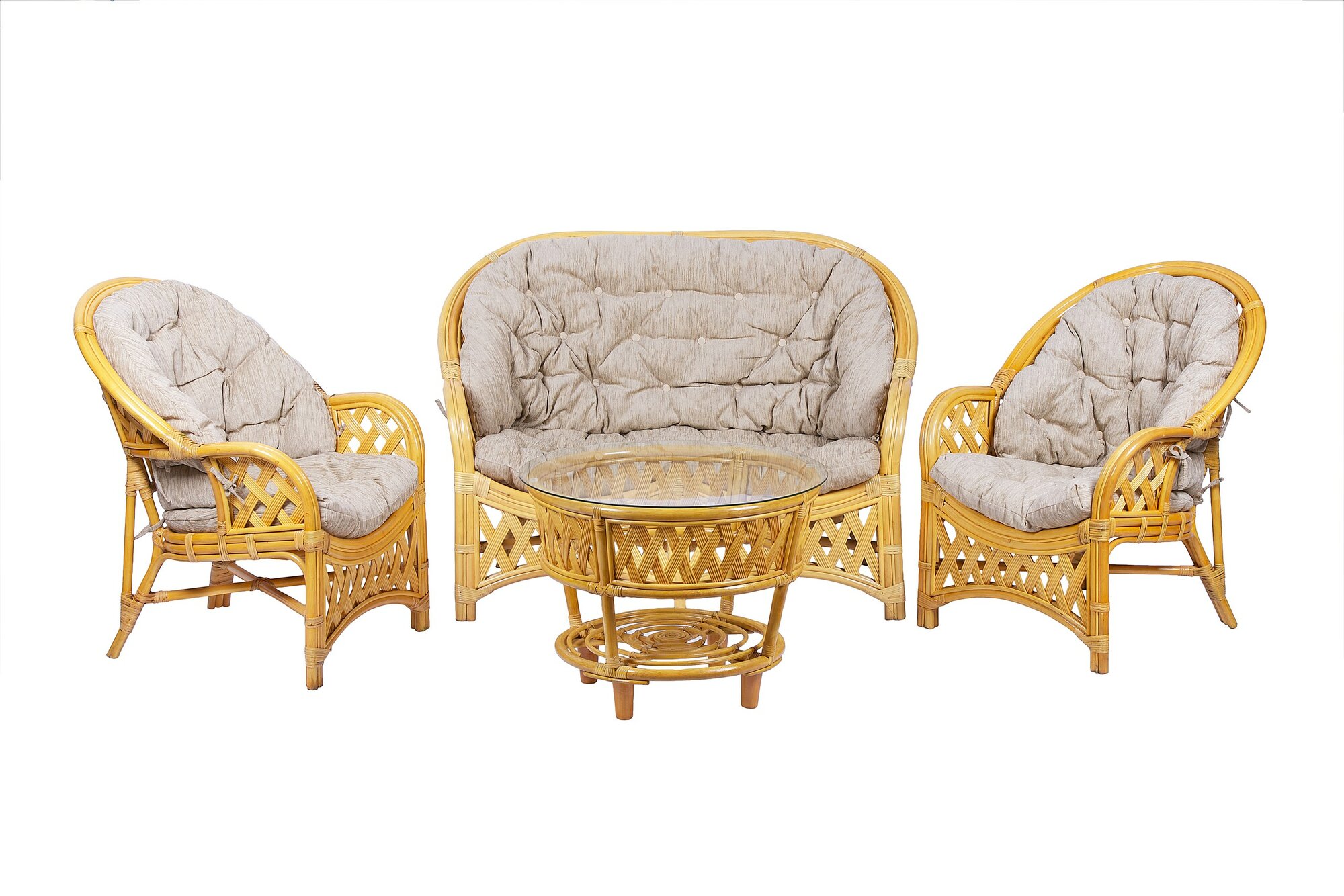 Отзывы на Комплект с 2хместным диваном и круглым столом из натурального ротанга Черчиль, цвет мед