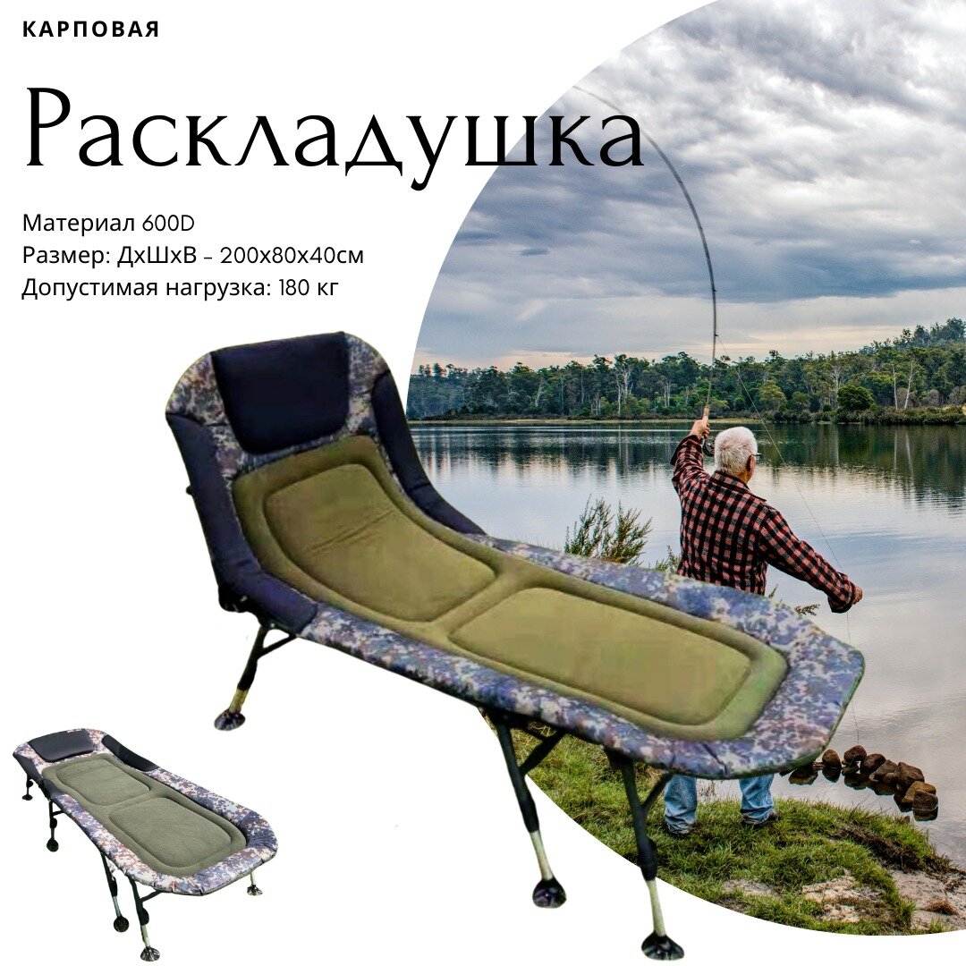 Раскладушка туристическая / Раскладушка карповая / Кровать раскладная с матрасом / Нагрузка до 180 кг информация:
