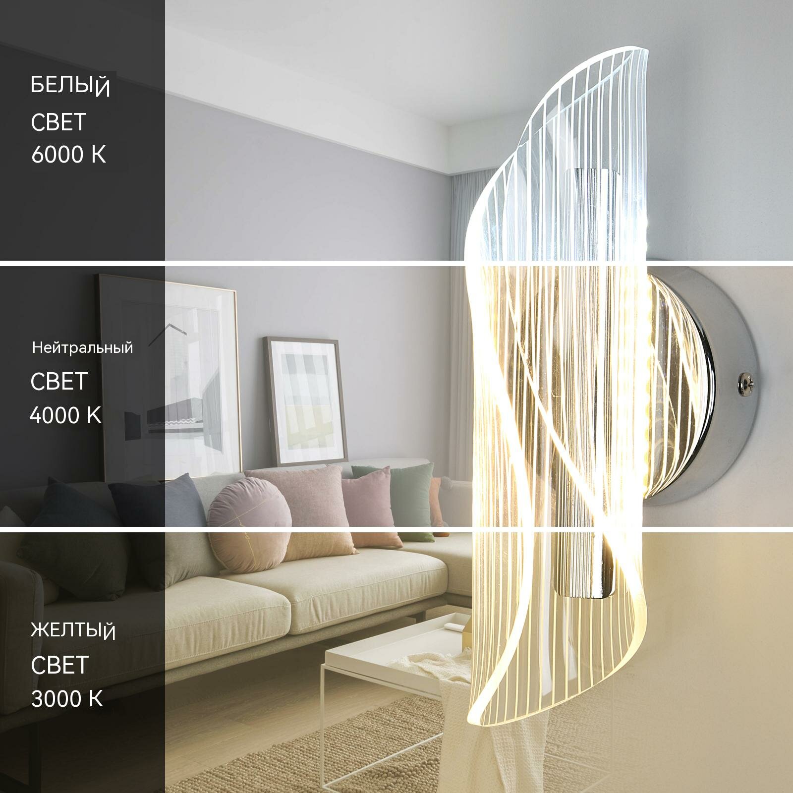 Светильник настенный, бра настенные, 6 Вт, 43 см, трехцветный меняющийся свет