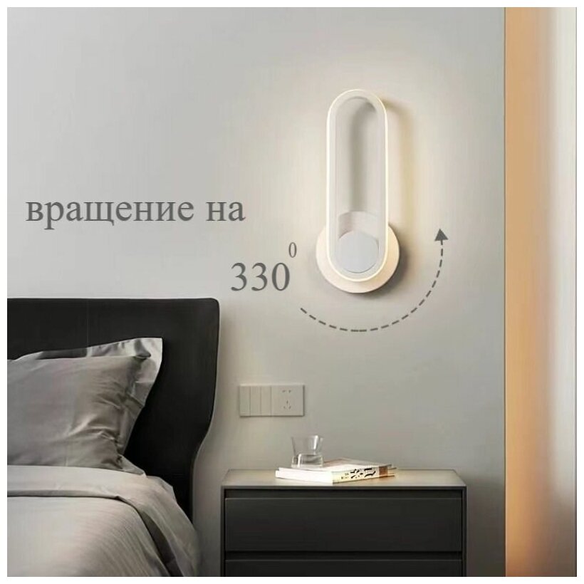Светодиодная настенная лампа,прикроватный светильник в спальню B09,вращающийся бра Белый 1 649 ₽