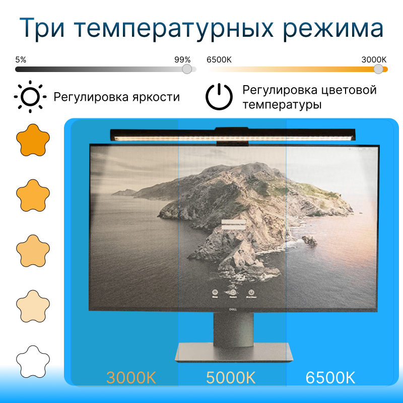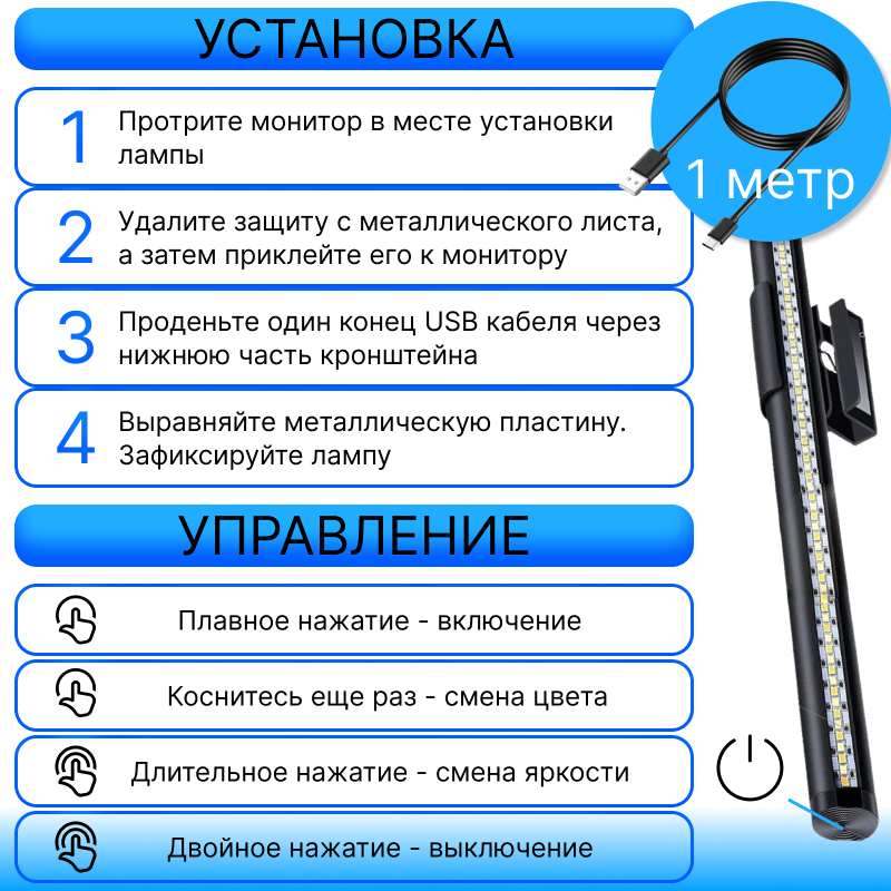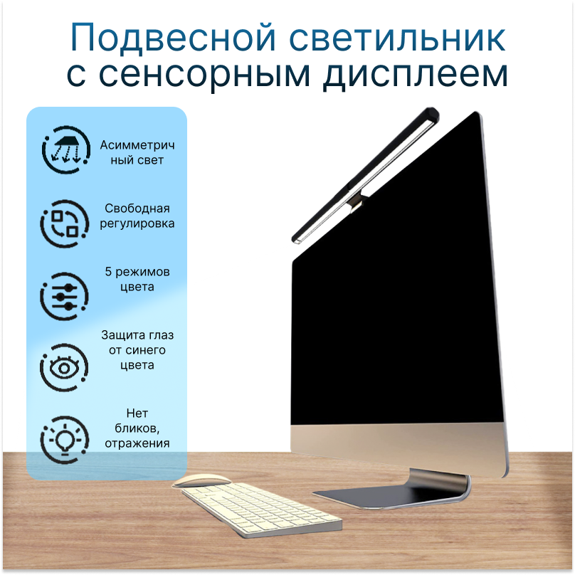 Лампа на монитор для рабочей зоны стола/ светодиодная USB лампа скринбар 5 режимов информация: