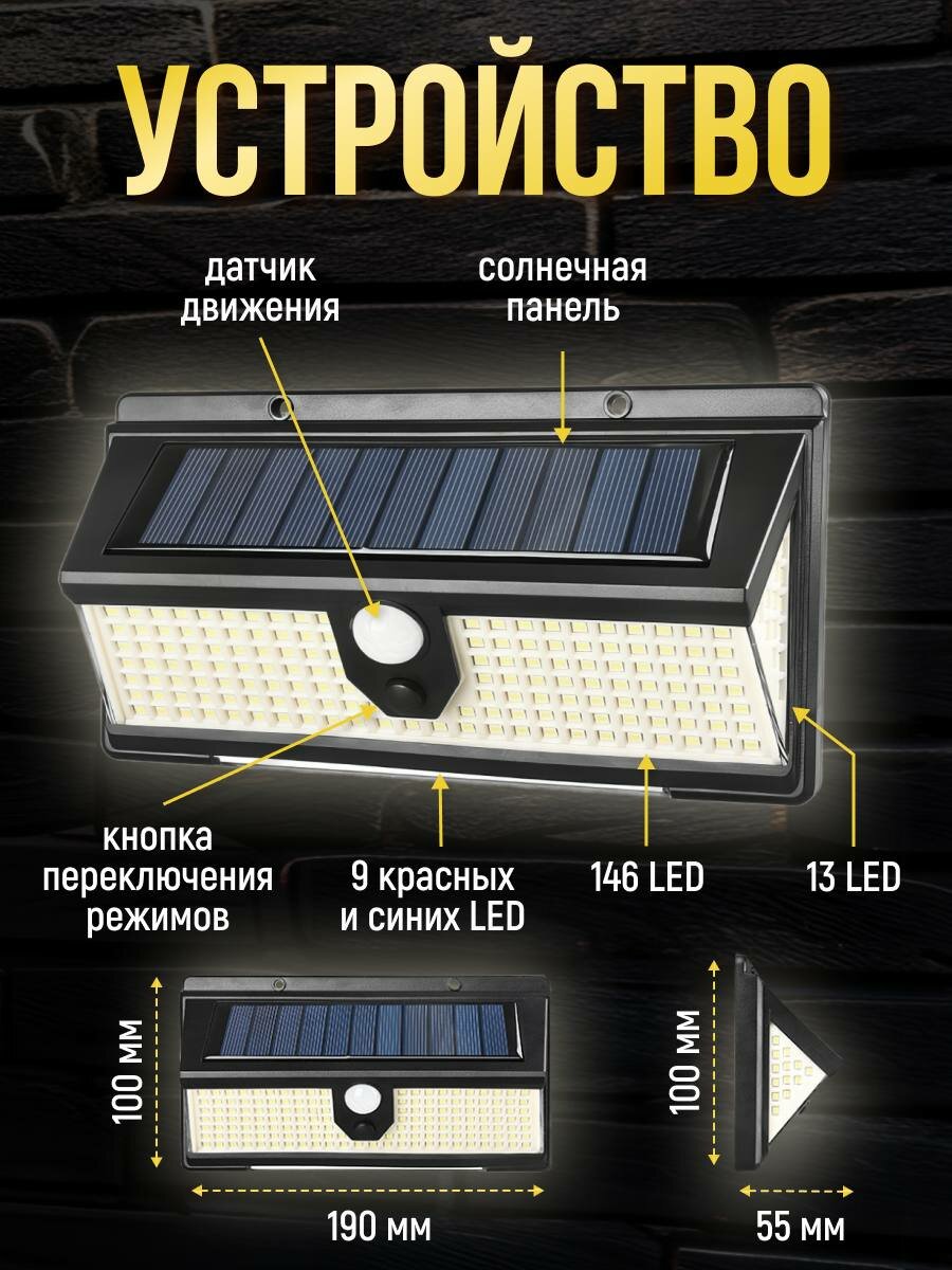Прожектор светодиодный уличный SL172LED с 4 режимами, режимом цветной подсветки, с датчиком движения на солнечной батарее информация: