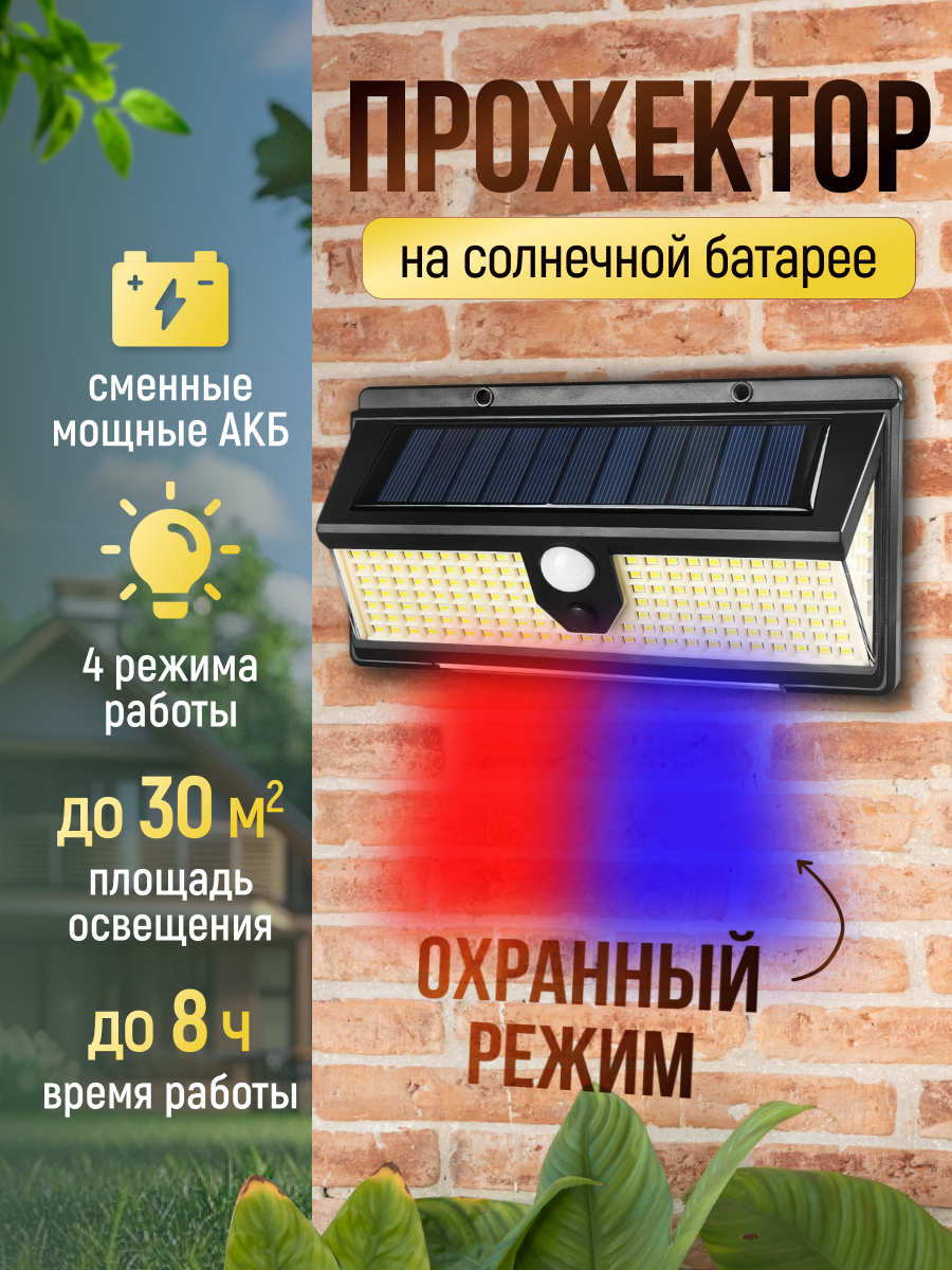 Отзывы на Прожектор светодиодный уличный SL172LED с 4 режимами, режимом цветной подсветки, с датчиком движения на солнечной батарее