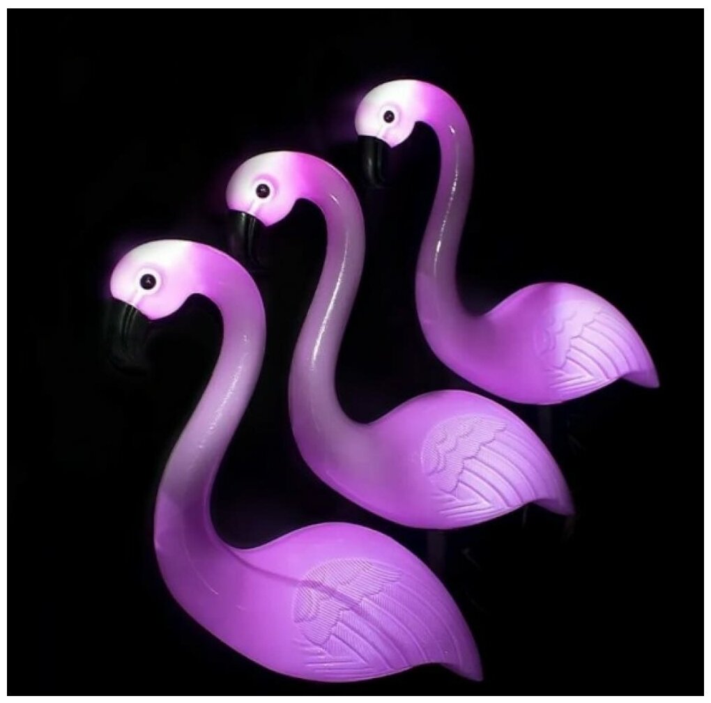 2шт. - Садовый светильник Три розовых фламинго на солнечной батарее / Космос; арт. KOC_SOL367; оригинал / - комплект 2шт