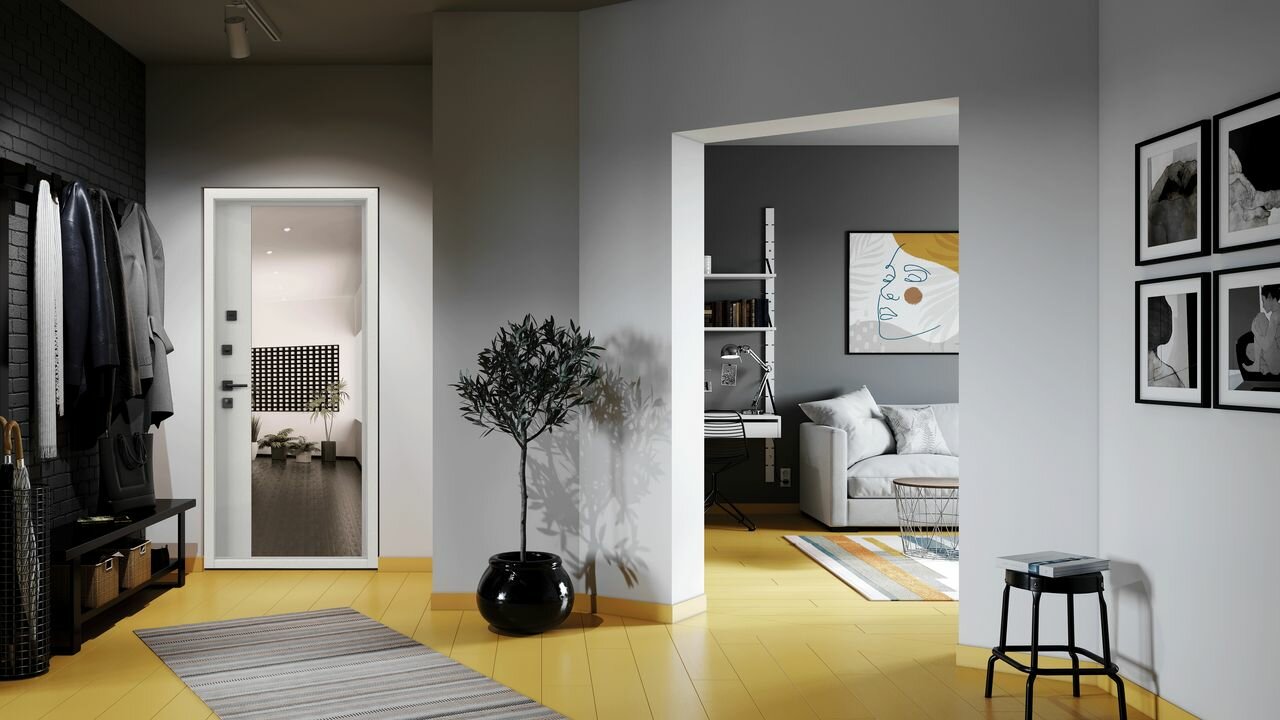 Входная дверь Labirint Лайн WHITE с зеркалом Фацет 960x2050, открывание левое
