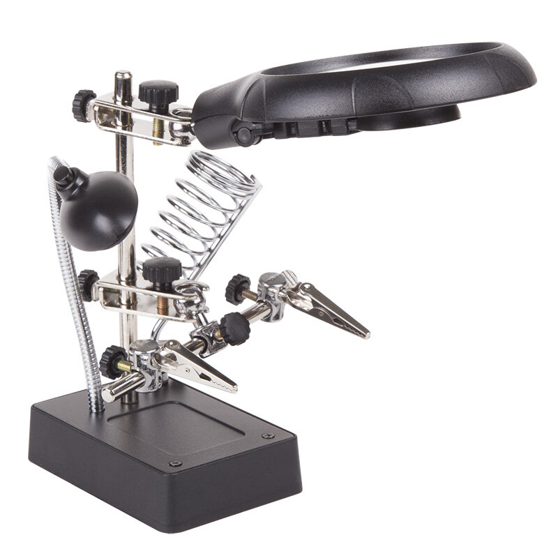 Отзывы на Rexant Держатель «Третья рука» REXANT, 2 зажима, лупа 90 мм + 2 х 34 мм, подставка паяльника, LED подсветка