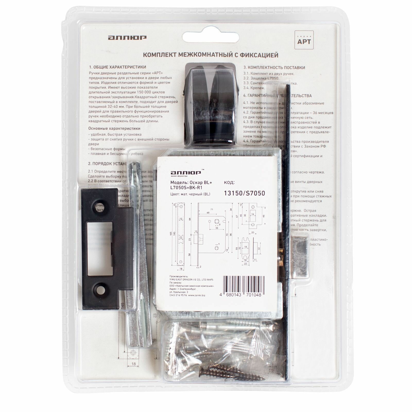 Комплект межкомнатный ручки, защелка, поворотник аллюр АРТ "оскар" BL+L7050S BL+BK-R1 BL (13150/S7050), матовый черный