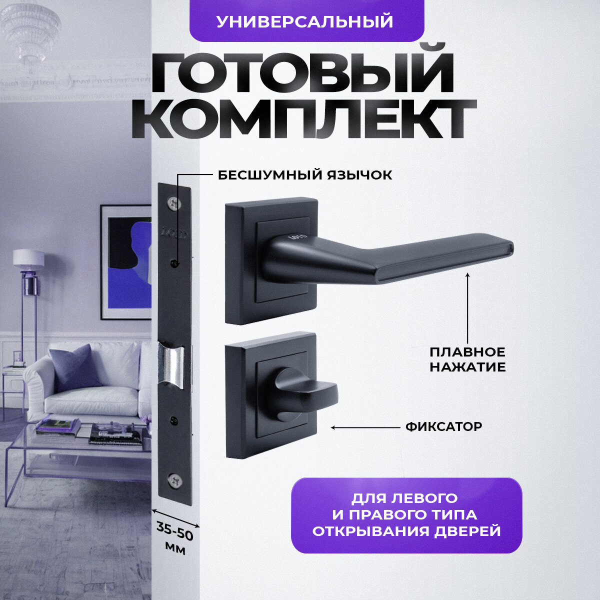 10 цен на Ручка дверная межкомнатная Loid 440 BL + замок M-2055 B BL + завертка квадратная BL черный
