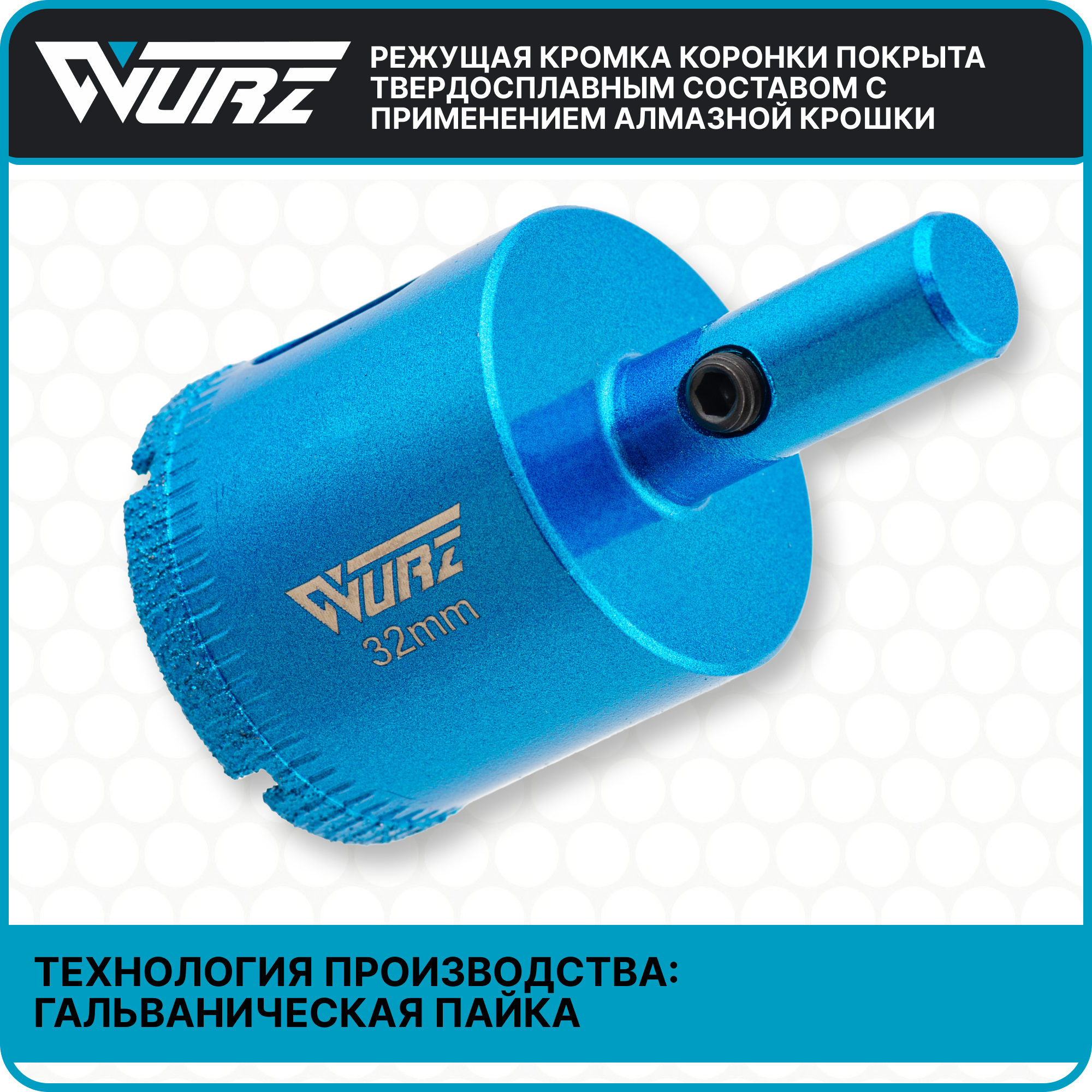 Коронка алмазная 32мм с центрирующим сверлом по керамике и стеклу Wurz 92032 информация: