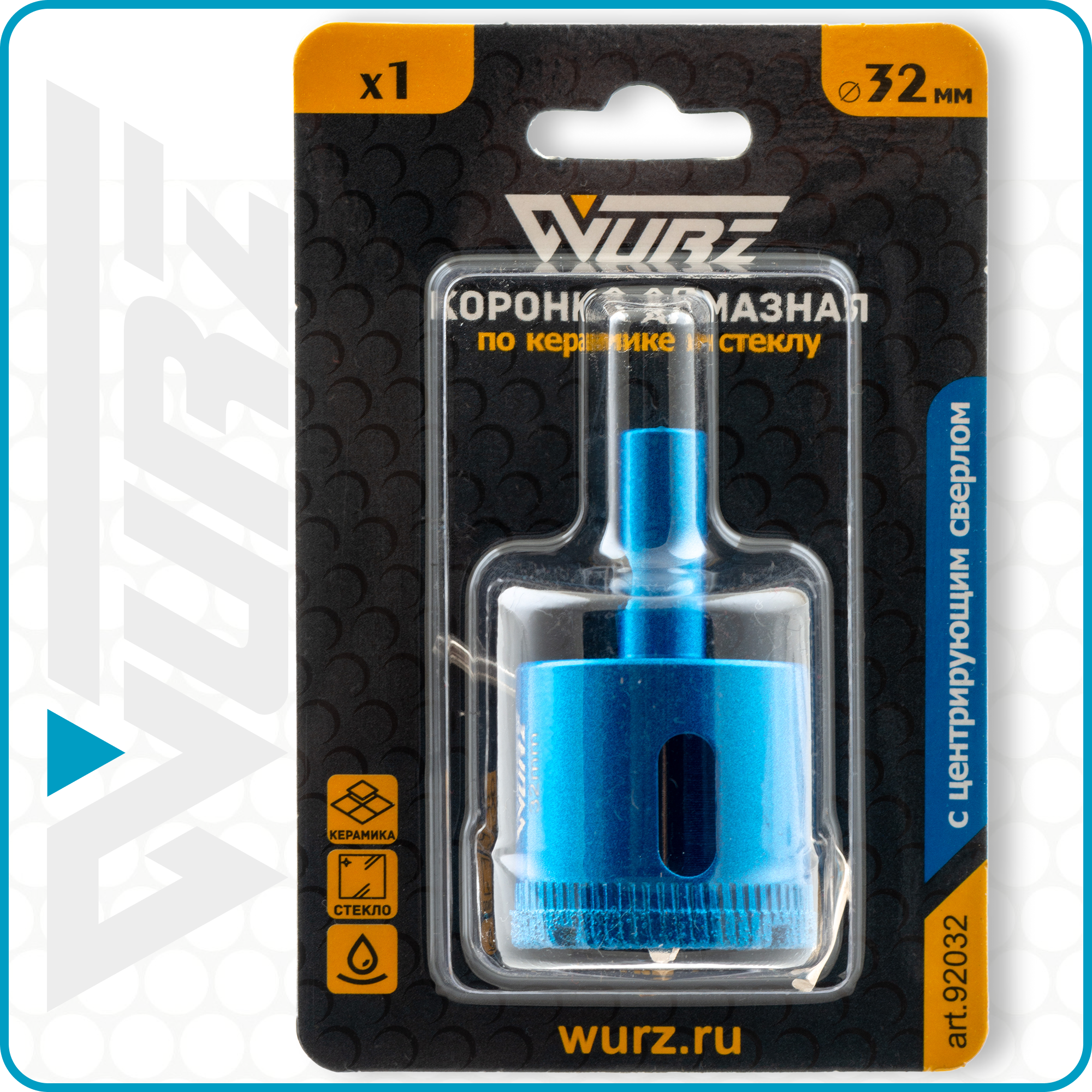 10 цен на Коронка алмазная 32мм с центрирующим сверлом по керамике и стеклу Wurz 92032