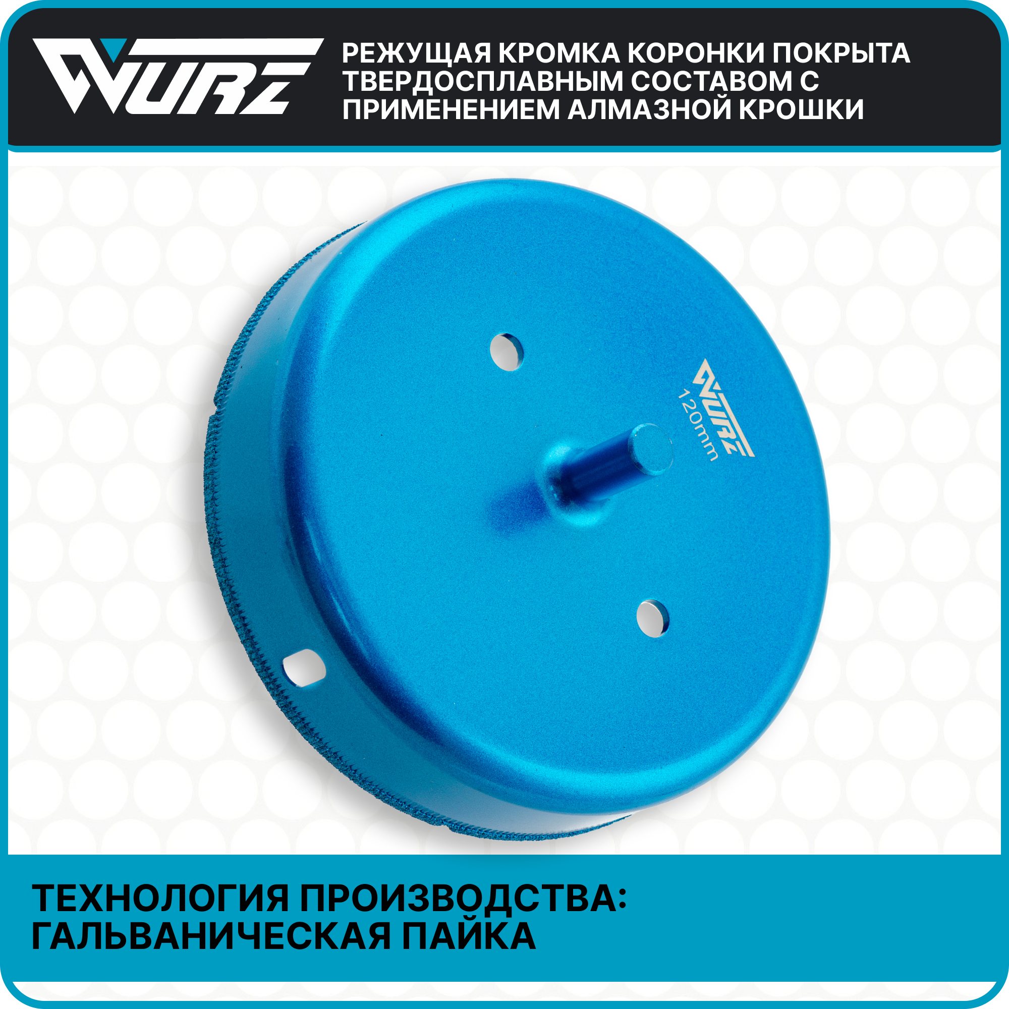 10 цен на Коронка алмазная 120мм с центрирующим сверлом по керамике и стеклу Wurz 92120
