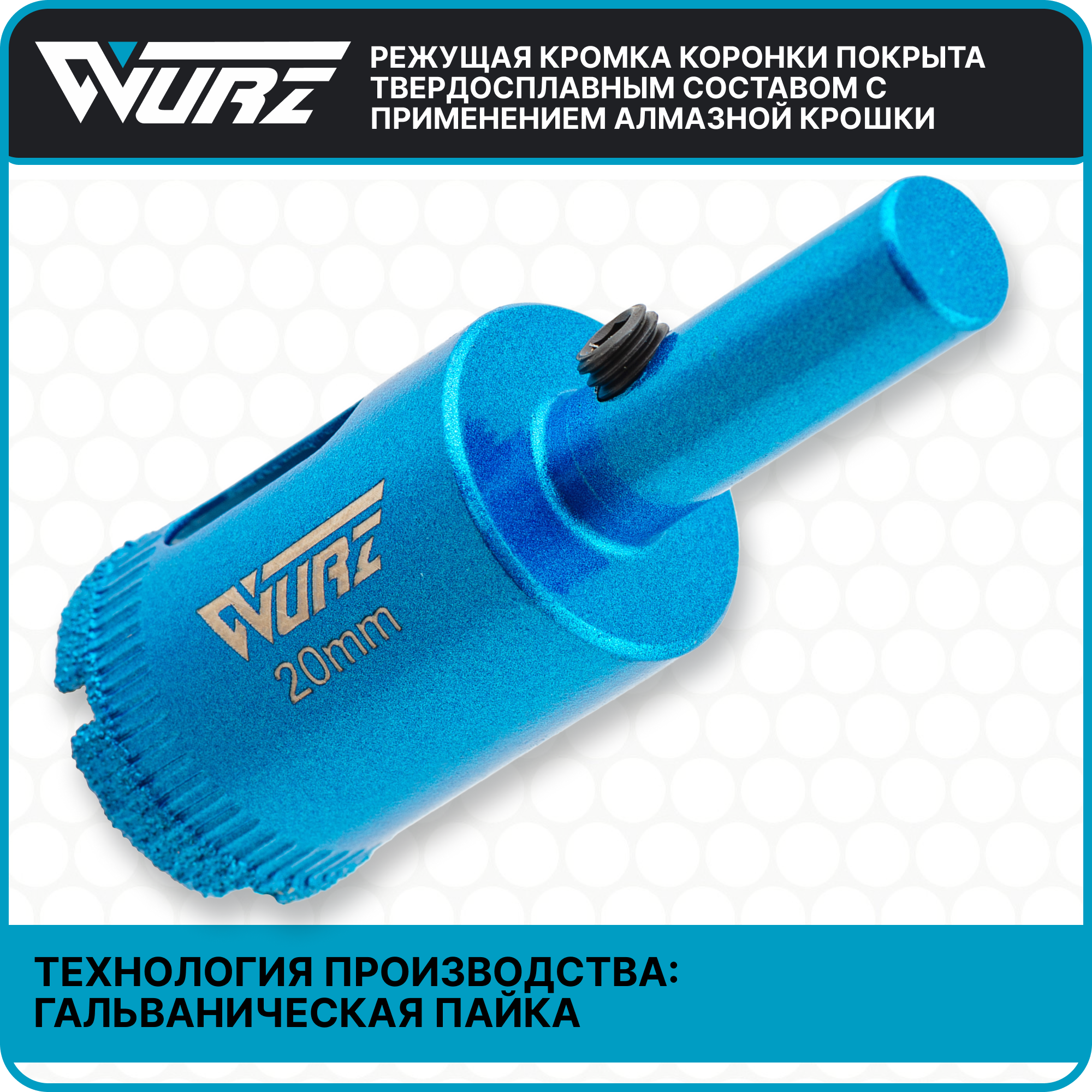 10 цен на Коронка алмазная 20мм с центрирующим сверлом по керамике и стеклу Wurz 92020