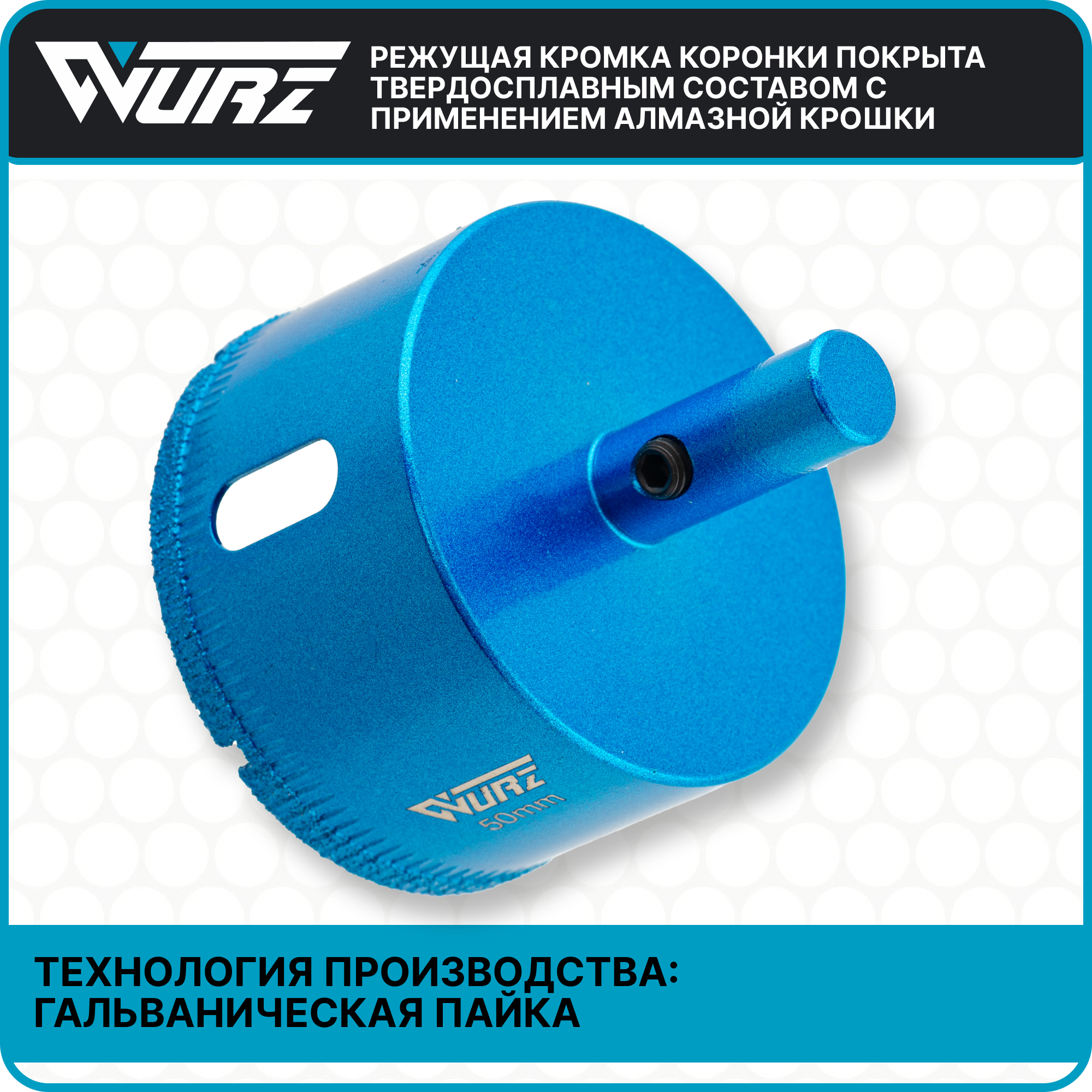 10 цен на Коронка алмазная 50мм с центрирующим сверлом по керамике и стеклу Wurz 92050