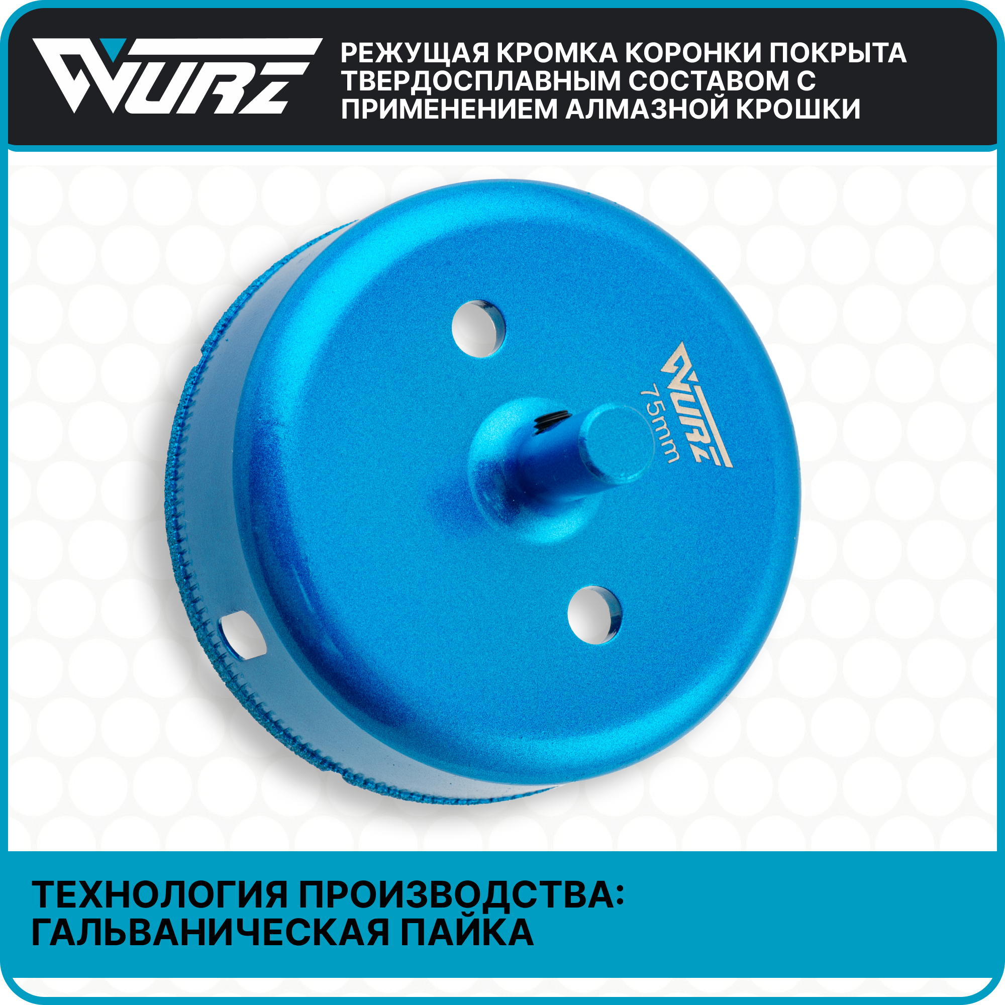 Коронка алмазная 75мм с центрирующим сверлом по керамике и стеклу Wurz 92075 информация: