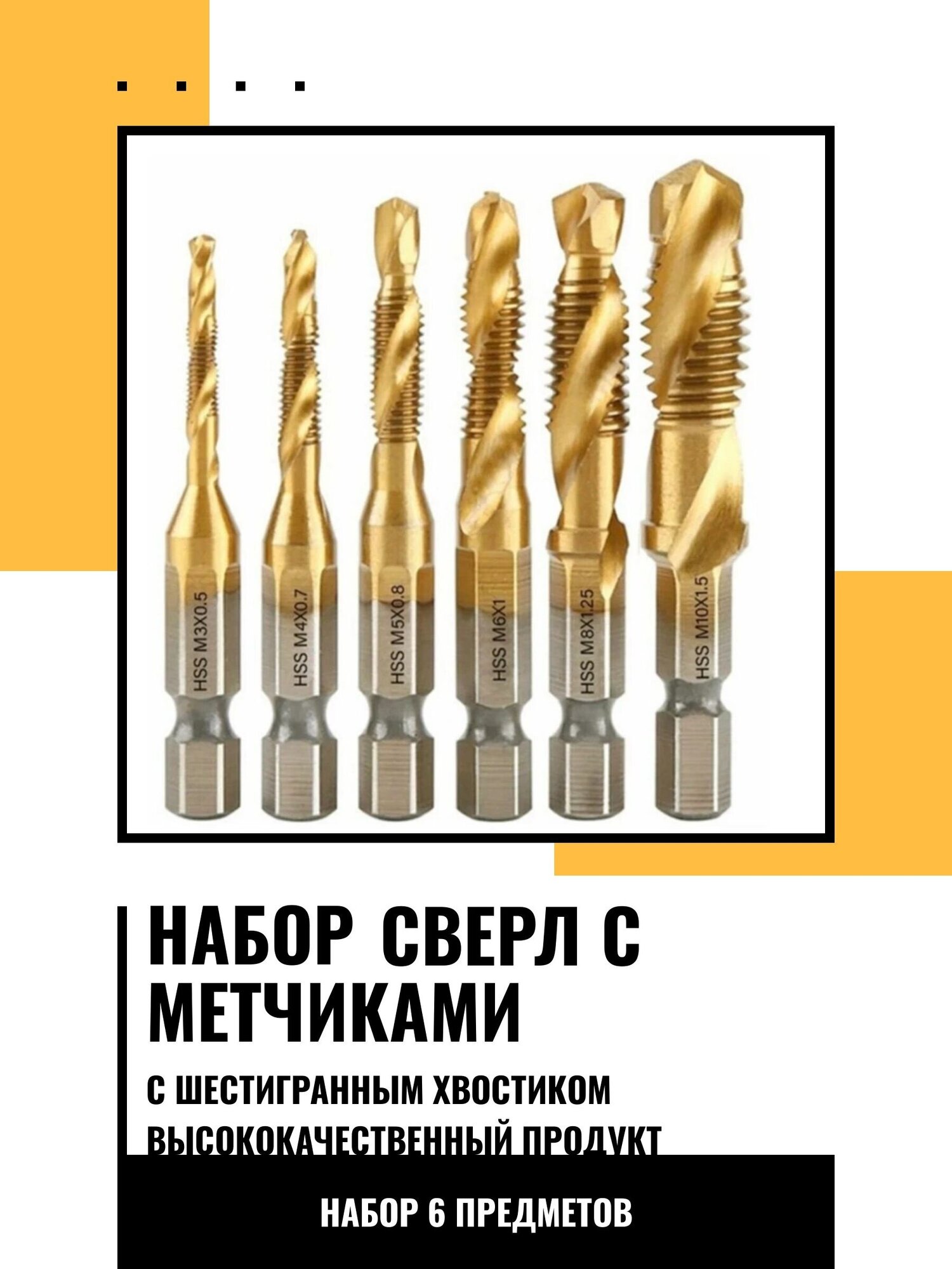 Отзывы на Набор сверл-метчиков с титановым покрытием из быстрорежущей стали, 3-10мм