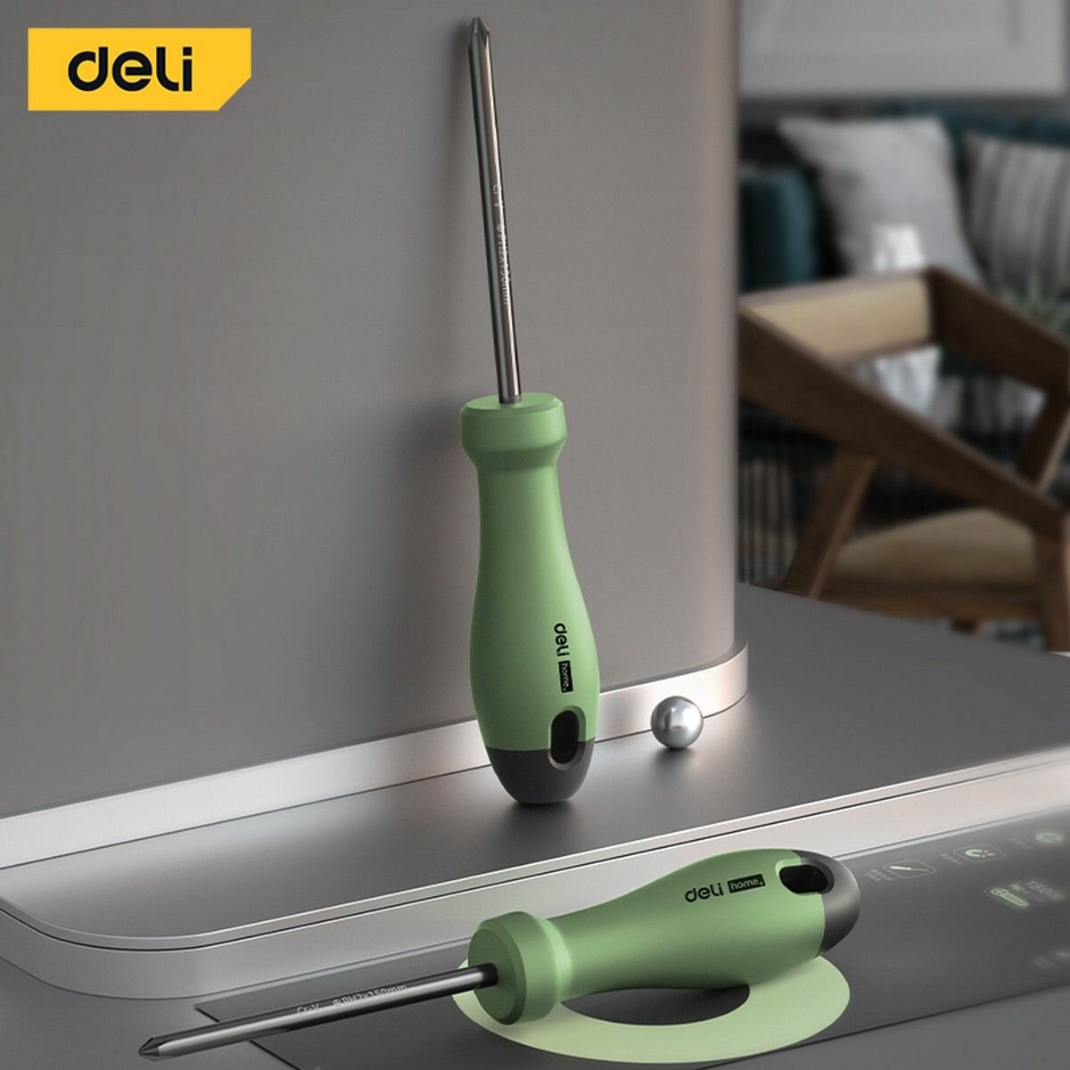 10 цен на Крестовая отвертка Deli "Home Series Green" HT1206L PH2x150мм, Cr-V, Soft Touch рукоятка, эксклюзивный дизайн, подарочная упаковка