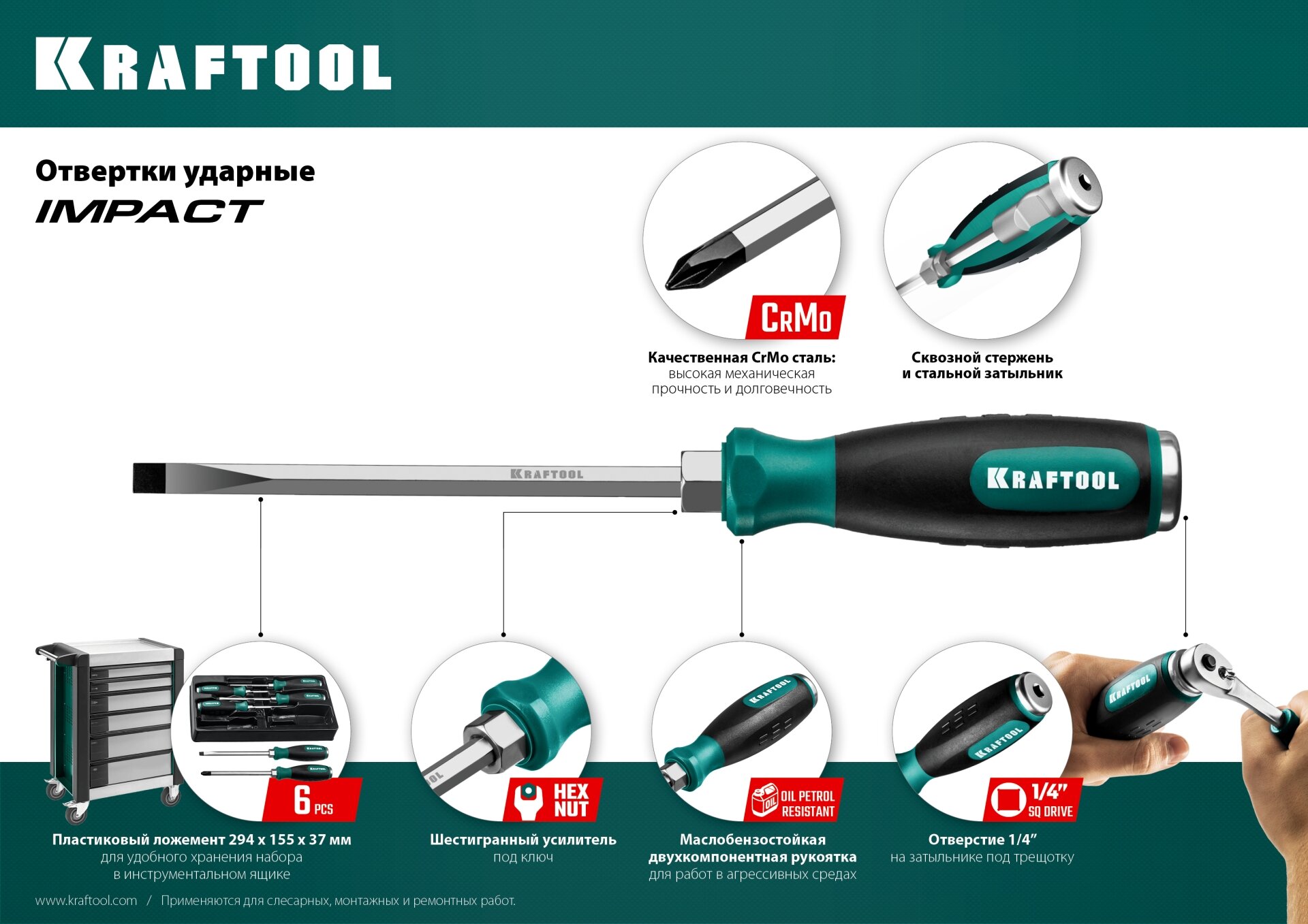 Kraftool Отвертка ударная "Impact", сквозной стержень из CrMo стали 250033-5 информация:
