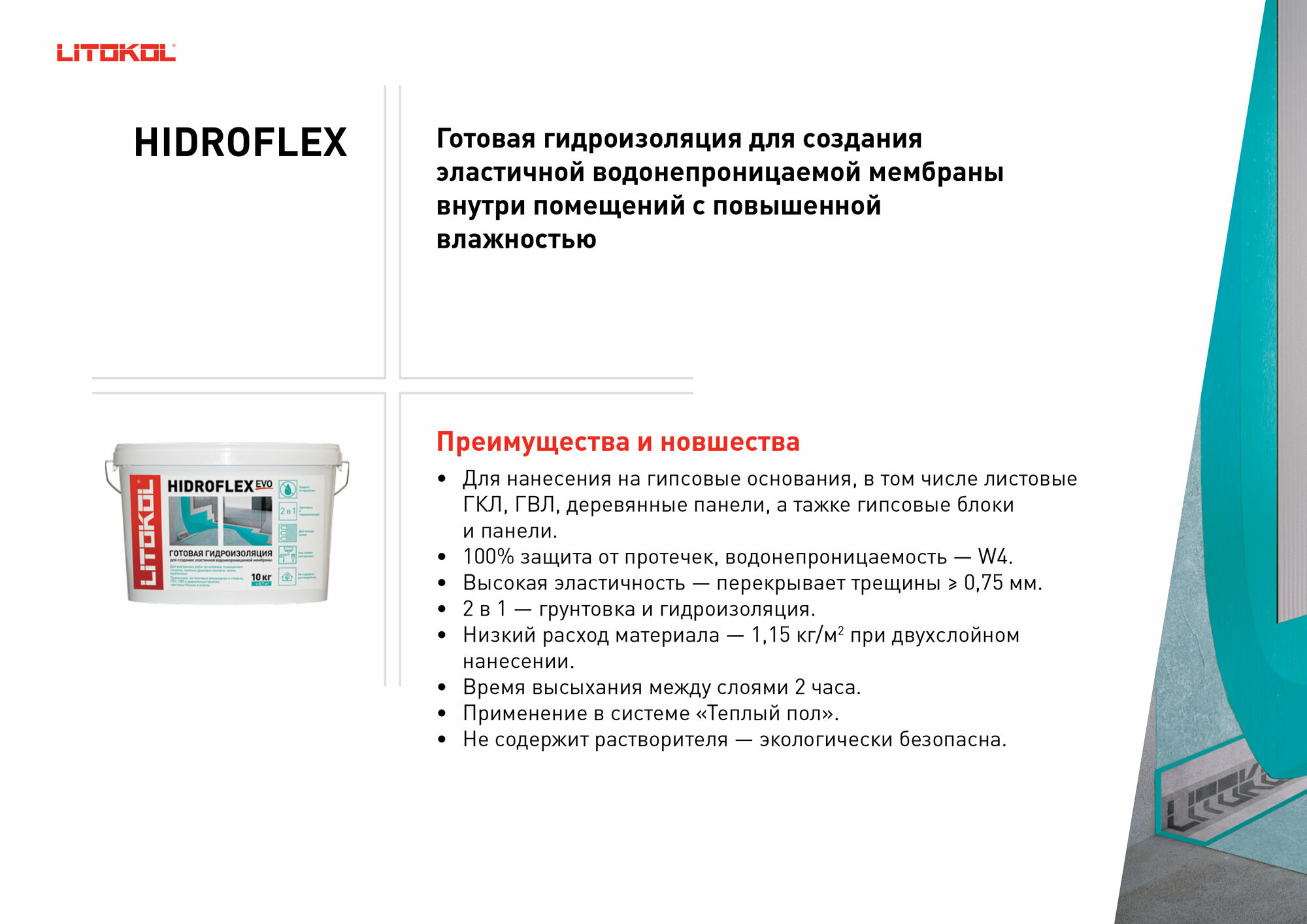 Гидроизоляция готовая полимерная Мастика LITOKOL HIDROFLEX EVO 5 кг информация: