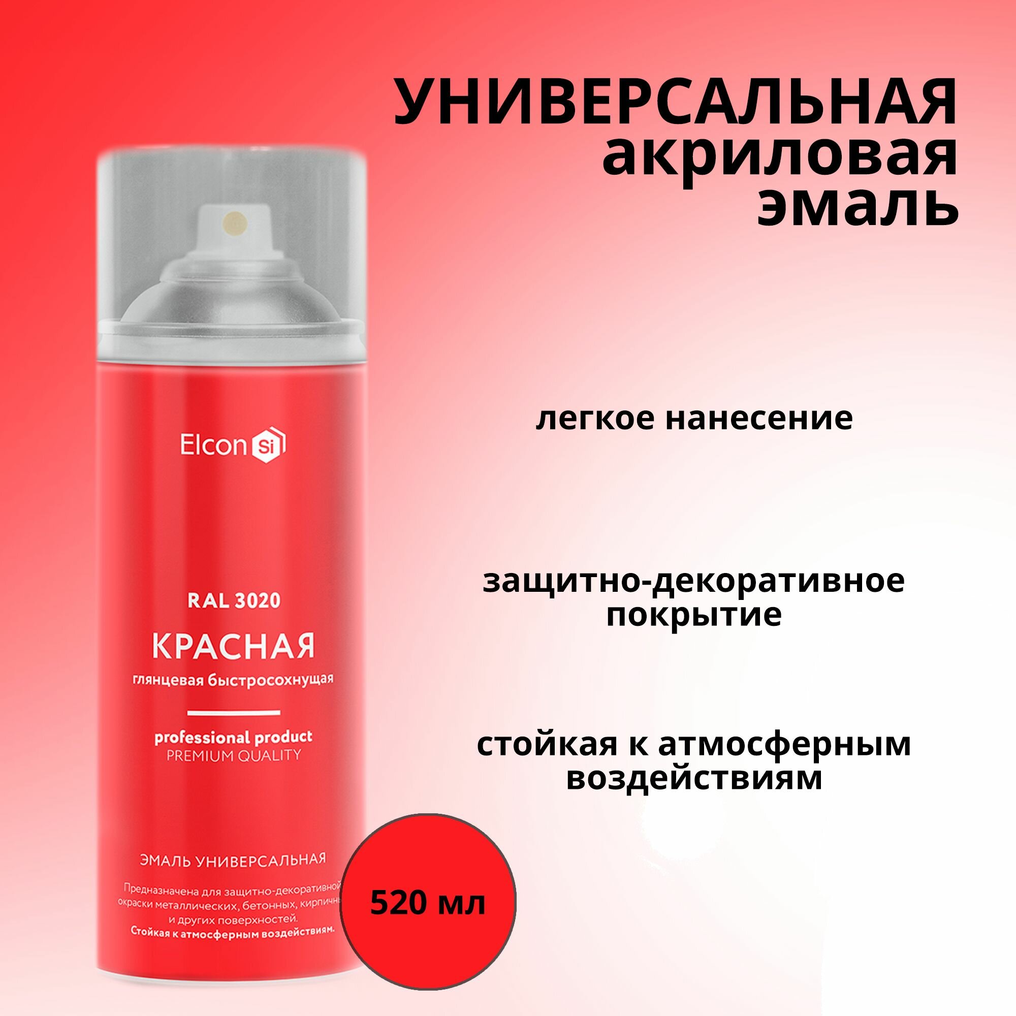 Универсальная краска для металла ELCON RAL 3020 красный глянцевая аэрозоль 520 мл информация: