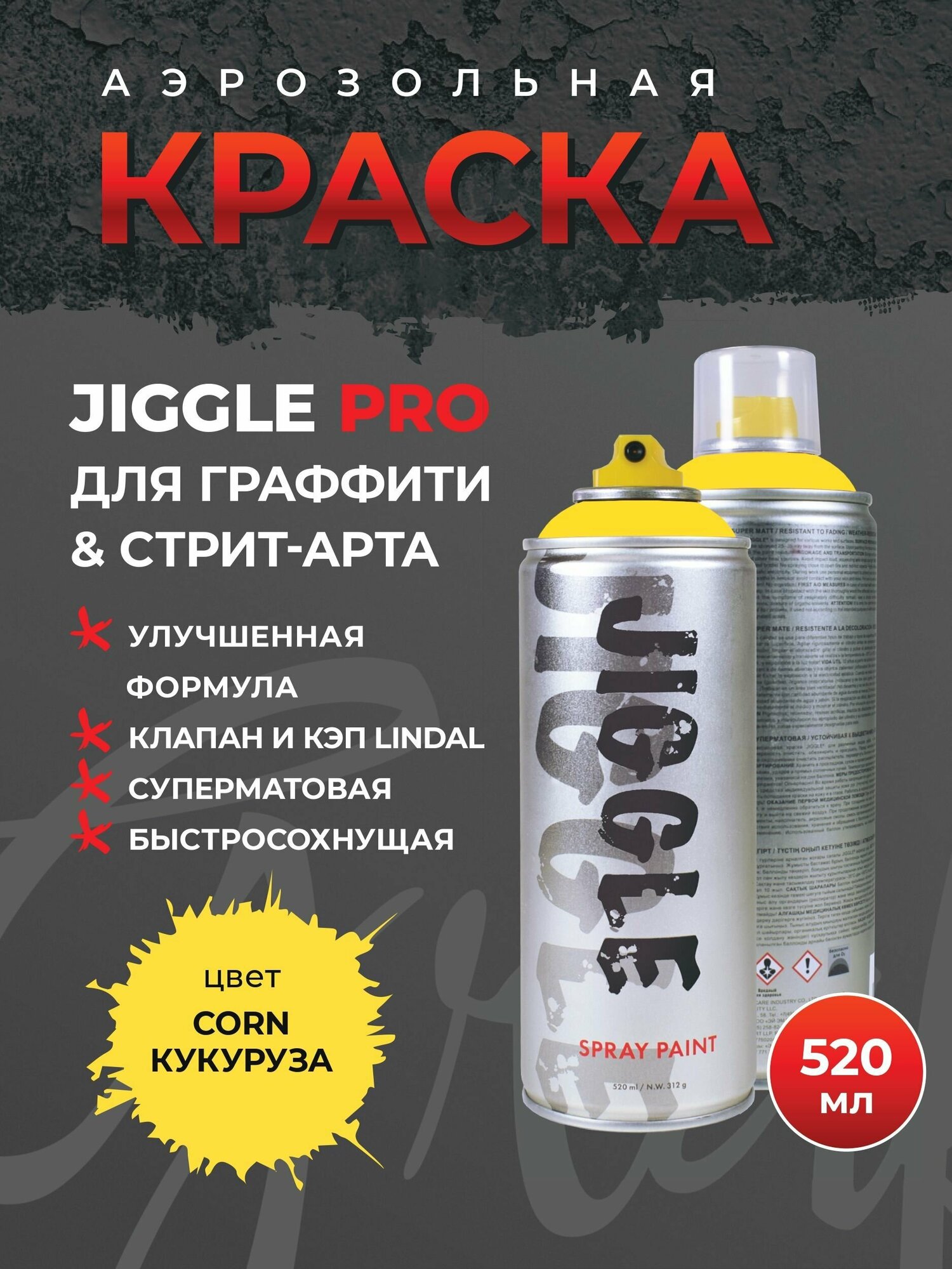 Отзывы на Аэрозольная краска для граффити в баллончике JIGGLE PRO суперматовая, 520 мл, CORN / Кукуруза